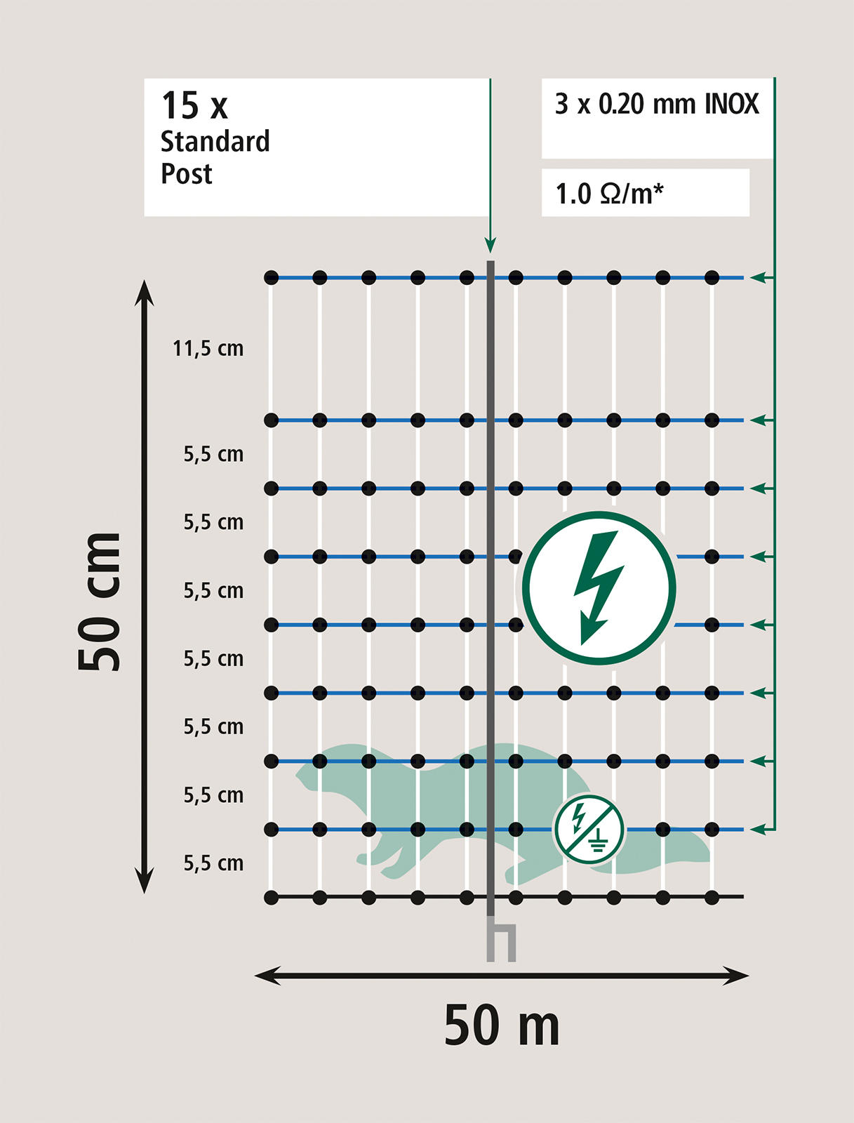 - Optimierter Stromfluss: Die unterste Litze ist bewusst ohne stromführende Leiter ausgeführt. Dies verhindert eine unerwünscht starke Ableitung in feuchte Wiesen oder Waldböden und gewährleistet eine effiziente Stromversorgung des restlichen Netzes.