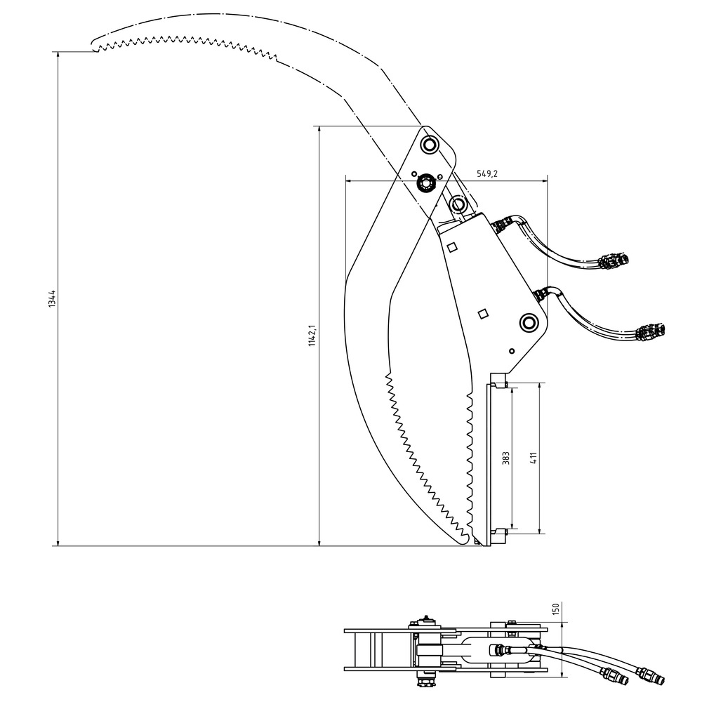zur Aufnahme für Palettengabelträgerrahmen FEM 2/ISO 2.Der hydraulische Niederhalter ist durch eine Klemmverbindung schnell auf dem Gabelträger an- und abgebaut. Inklusive Hydraulikschläuche und Stecker, Öffnungsweite 1340 mm, Gewicht 75 kg, Palettengabelträger-Aufnahme ISO-2/FEM2, konische Aufnahme, Weite 383 mm.