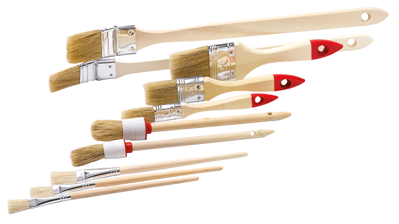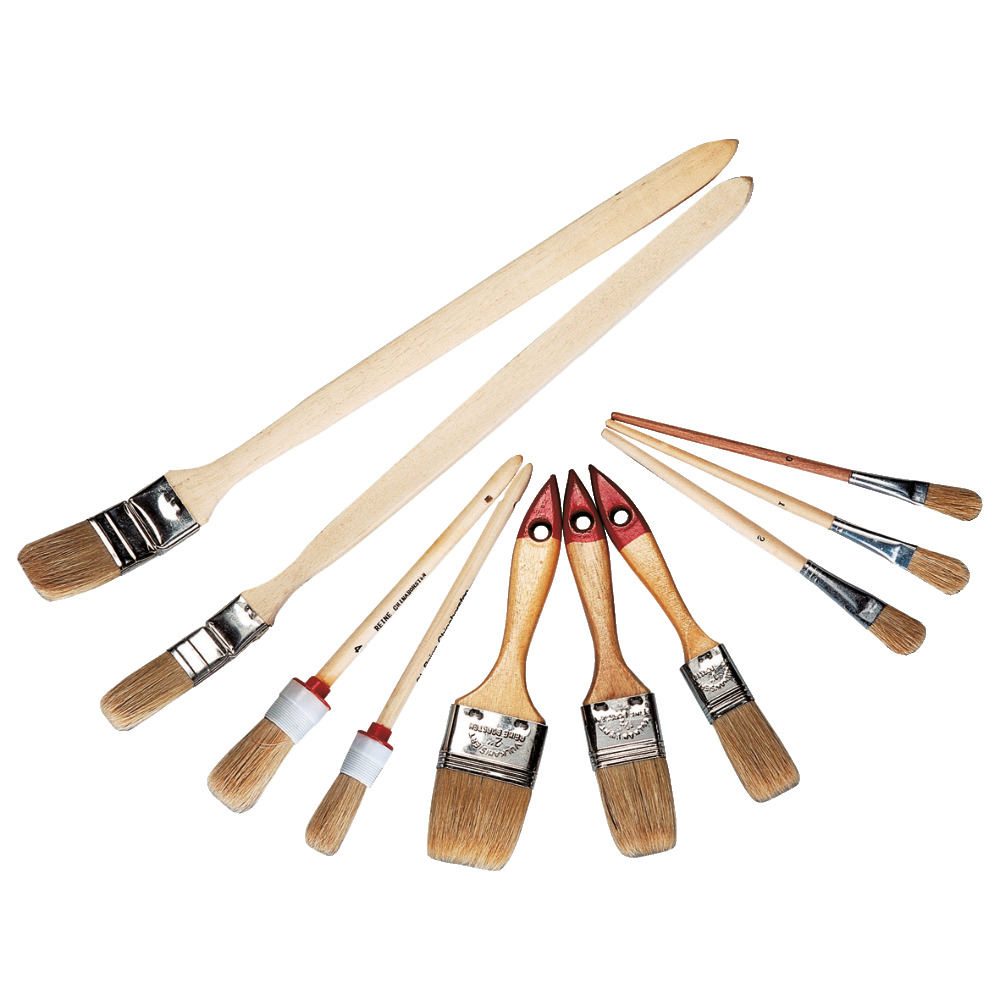 Umfangreiches Sortiment von gängigen Pinseln.