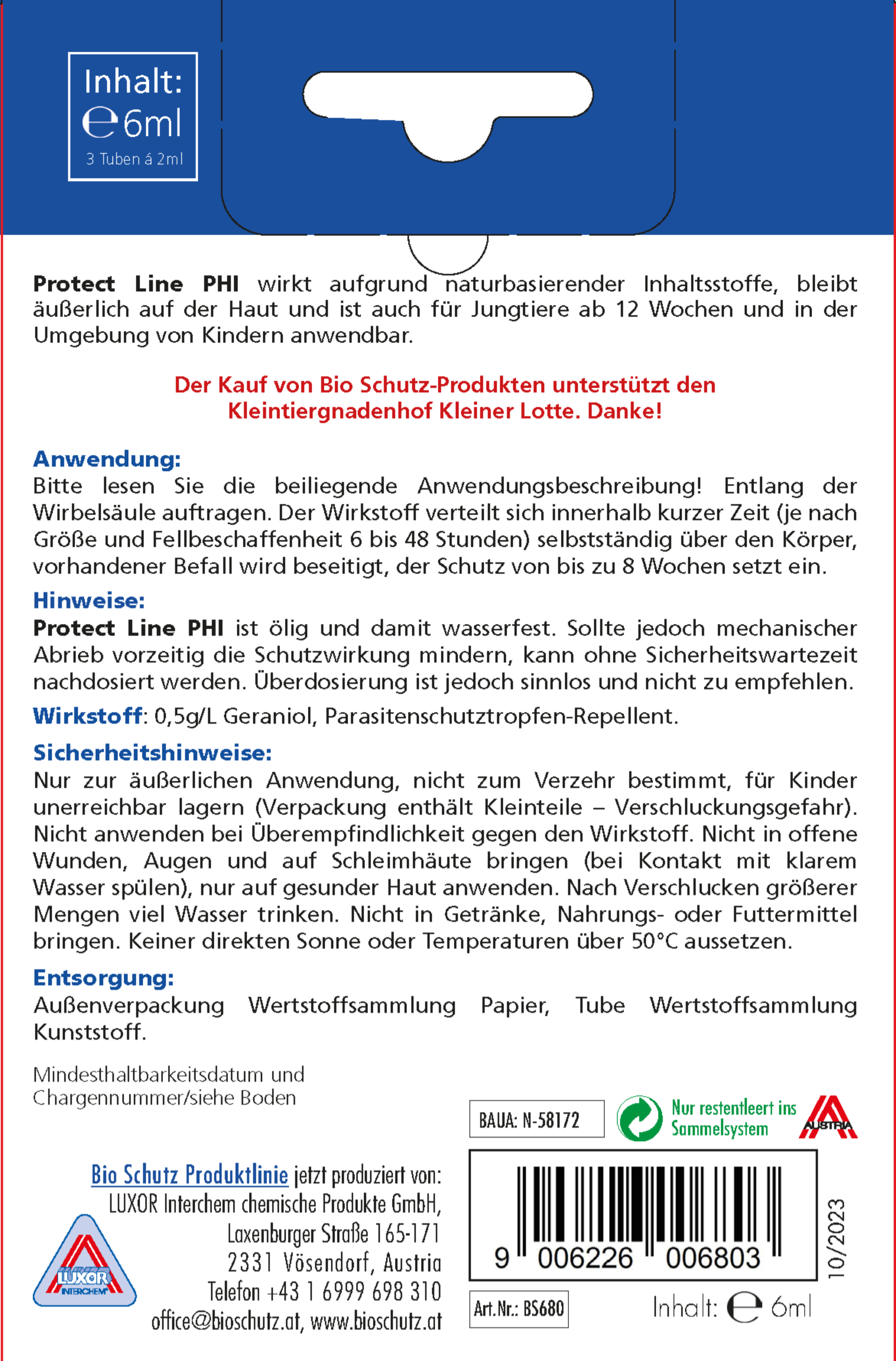 BAUA-Registrierungsnr. N-58172Natürlicher Wirkstoff GerianolGeraniol ist ein naturbasierender Stoff, der Bestandteil zahlreicher Pflanzen und Kräuterist. Er findet sich u.a. in Geranien, Rosen, im Koriander, im Lorbeer,imThymian sowie im Currykraut. Eingesetzt wird Geraniol auch in der Parfümindustrie, für aromatherapeutische Anwendungen und in Lebensmitteln. AlsWirkstoff zur Insektenbekämpfung hat Geraniol vor allem den Vorteil, dass es sowohl hervorragend als Repellent (wehrt ab, vertreibt) wie auch effektiv alsabtötendes Insektizid wirken kann. Damit ergibt sich eine breite Palette an Produkten, die je nach Ausbringung und Dosierung zur Prophylaxe oder akutenAnwendung, vor allem gegen Flöhe und Zecken, ideal sind. Der größte Vorteil ist allerdings, dass Geraniol sich vor allem von üblichen toxischen Insektizidenunterscheidet. Seit Jahrzehnten wurden hauptsächlich Gifte gegen Insekten eingesetzt. Vor allem Nervengifte belasten das Immunsystem von Menschund Tier, sowie die Umwelt. Geraniol ist kein Nervengift. Stattdessen wird lediglich das Chitin der Insekten angegriffen, was zu ihrem Absterben führt.Mensch und Haustier haben kein Chitin, bleiben von diesem Effekt unberührt. Die gewünschte Wirkungwird bereits bei geringer Dosierung erreicht, so dassin Bio Schutz Produkten selbst der typische Geruch von Geraniol kaum wahrnehmbar ist.Produkt vorsichtig verwenden. Vor Gebrauch stets Kennzeichnung und Produktinformation lesen.