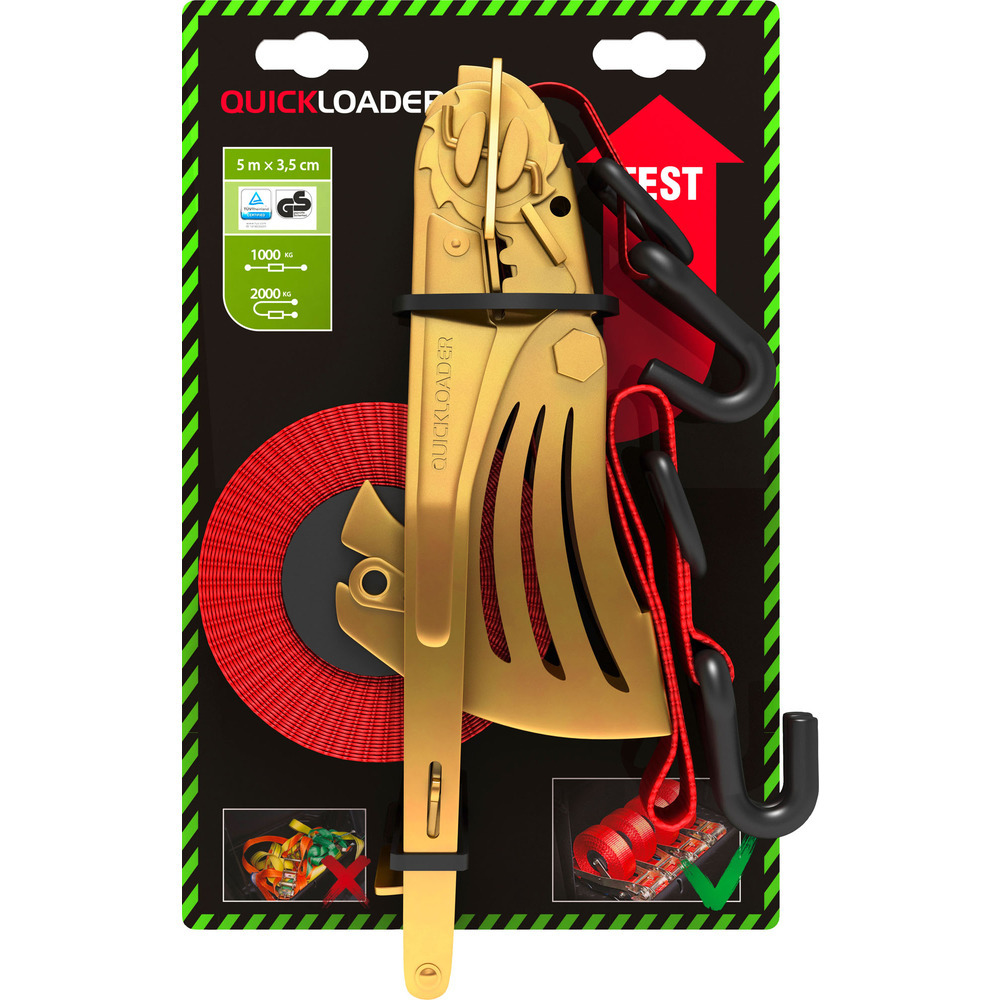 Neuartiger, patentierter Automatikzurrgurt mit zusätzlichem D-Ring, der mehr Möglichkeiten bei der Verankerung bietet.Zusätzlich zu den Vorteilen herkömmlicher Automatikzurrgurte (schnelles Aufrollen, aufgeräumter Arbeitsplatz) bietet dieQuickloader-Serie weitere Vorteile:
