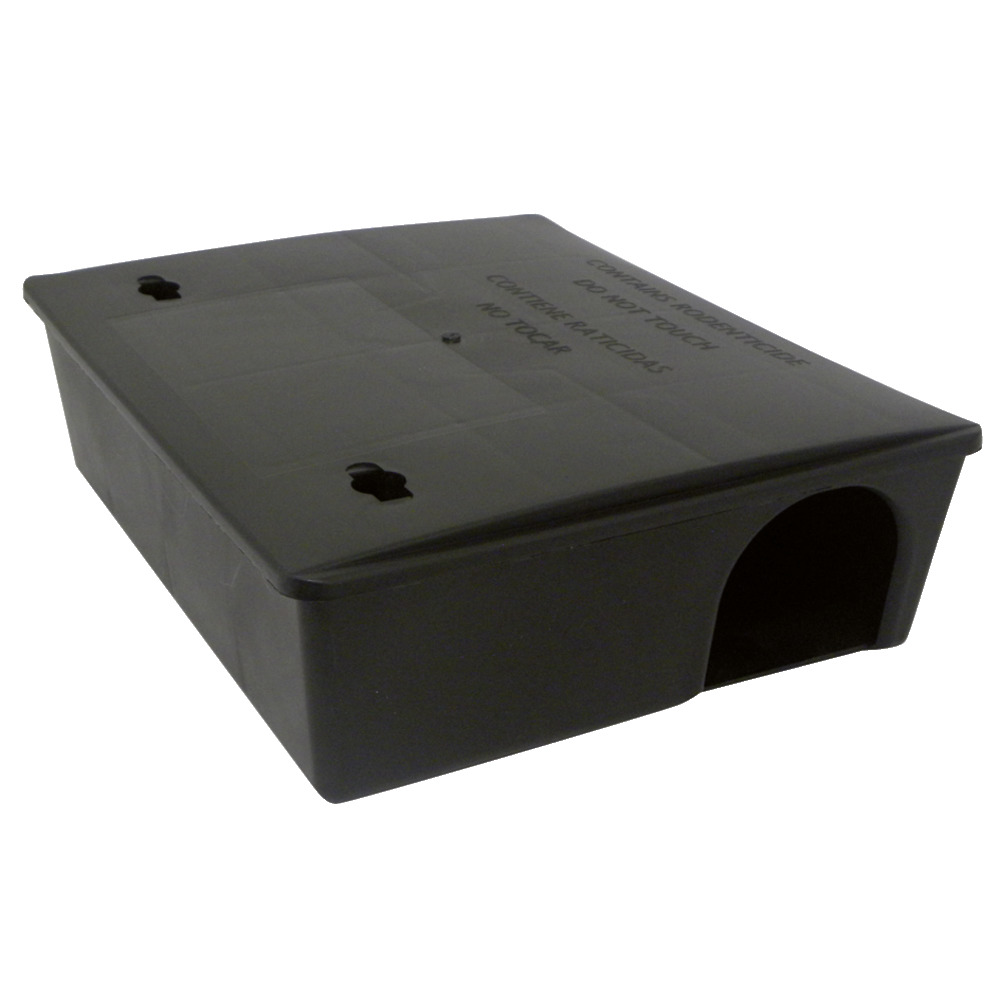 Kunststoffbox zum Ausbringen von Rattenködern. Witterungsbeständige Box zum Ausbringen von Köder, Pellets oder Blocks. Diese Box verhindert das Nasswerden des Köders und erlaubt die ungestörte und sichere Köderaufnahme. Kinder und Haustiere können den Köder durch die spezielle Sicherung nicht aufnehmen. Maße (LxBxH): 24 x 20 x 8 cm