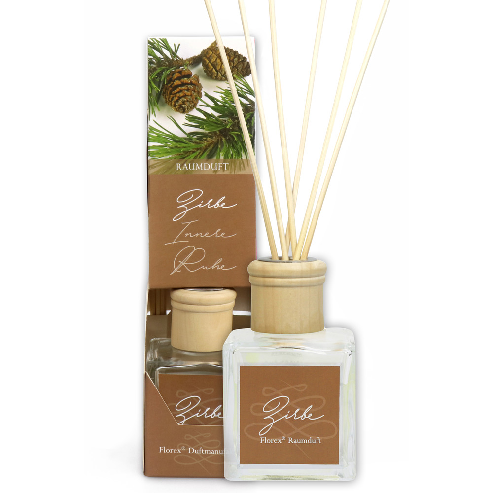 Der Florex Raumduft mit Stäbchen ‘Zirbe’ ist eine wahre Wohltat für Ihre Sinne.Mit einer Füllmenge von 100 ml verwandelt er jeden Raum in eine entspannende Oase, in der der Duft von Zirbe sanft in der Luft schwebt. Die im Raumduft sorgen für eine angenehme und beruhigende Atmosphäre. Die mitgelieferten Rattanstäbchen saugen den Duft auf und verteilen ihn gleichmäßig im Raum. Sobald sich die Stäbchen vollgesogen haben, entfaltet sich die dezente Zirbenote, die Ihre Sinne umschmeichelt.Die Reichweite des Raumdufts beträgt 6 bis 8 Wochen, sodass Sie lange Freude daran haben werden. Ob im Wohnzimmer, Schlafzimmer oder Badezimmer – der Florex Raumduft mit Stäbchen ‘Zirbe’ schafft eine harmonische Umgebung, in der Sie sich rundum wohlfühlen können.