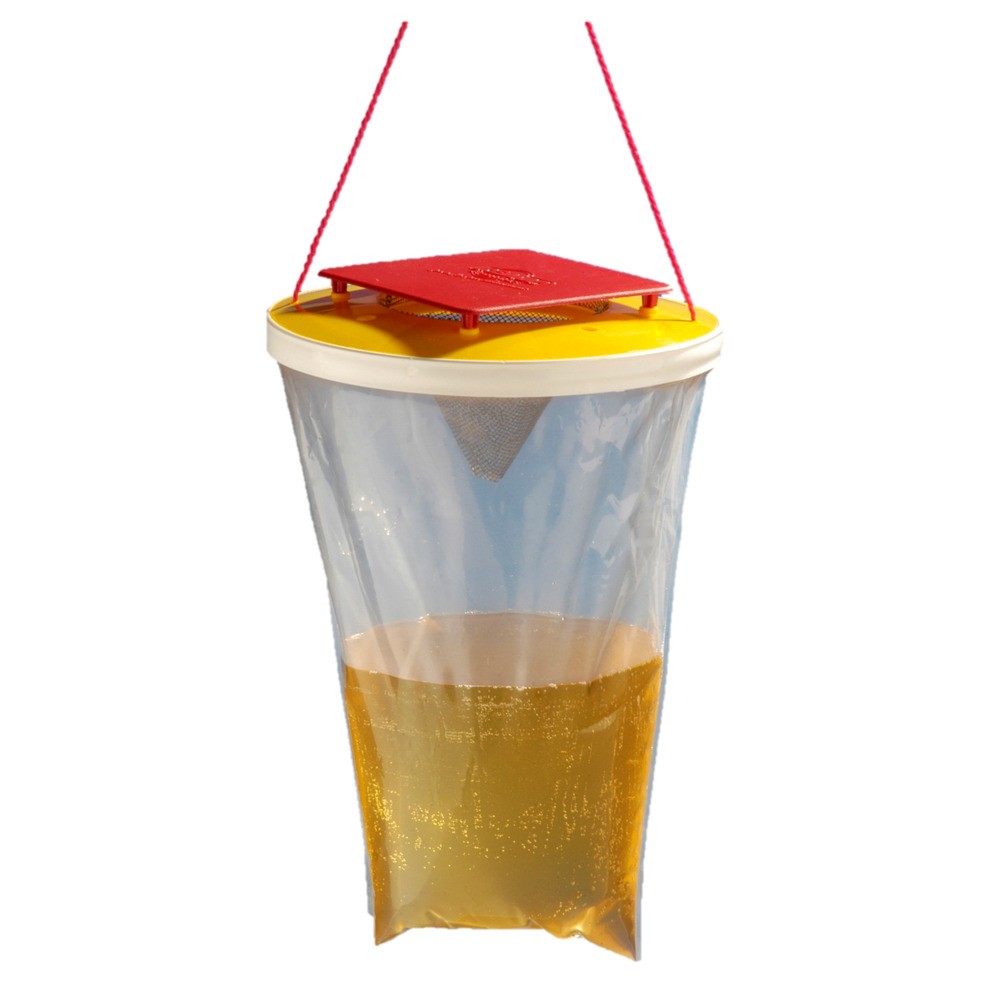 Die effektive Falle gegen Wespen für außen und innen. Die Insekten werden durch den Lockstoff angelockt, gelangen in das Innere der Falle, kommen aber durch die besondere Konstruktion nicht mehr raus. Keine Resistenzen! Einwegmodell, Inhalt 3 L