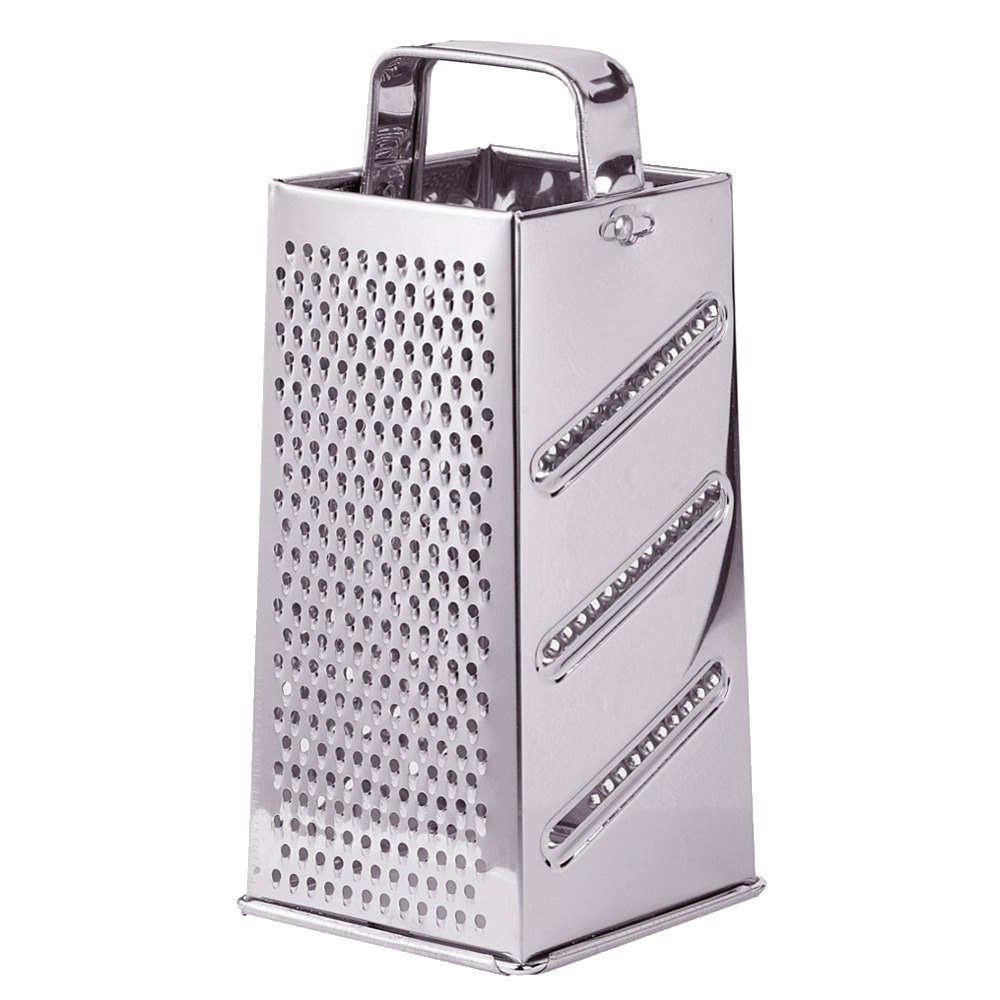 Aus Edelstahl, rostfrei, mit 4 Reibflächen: Gemüsereibe fein und grob / Kronenreibe/Universalreibe