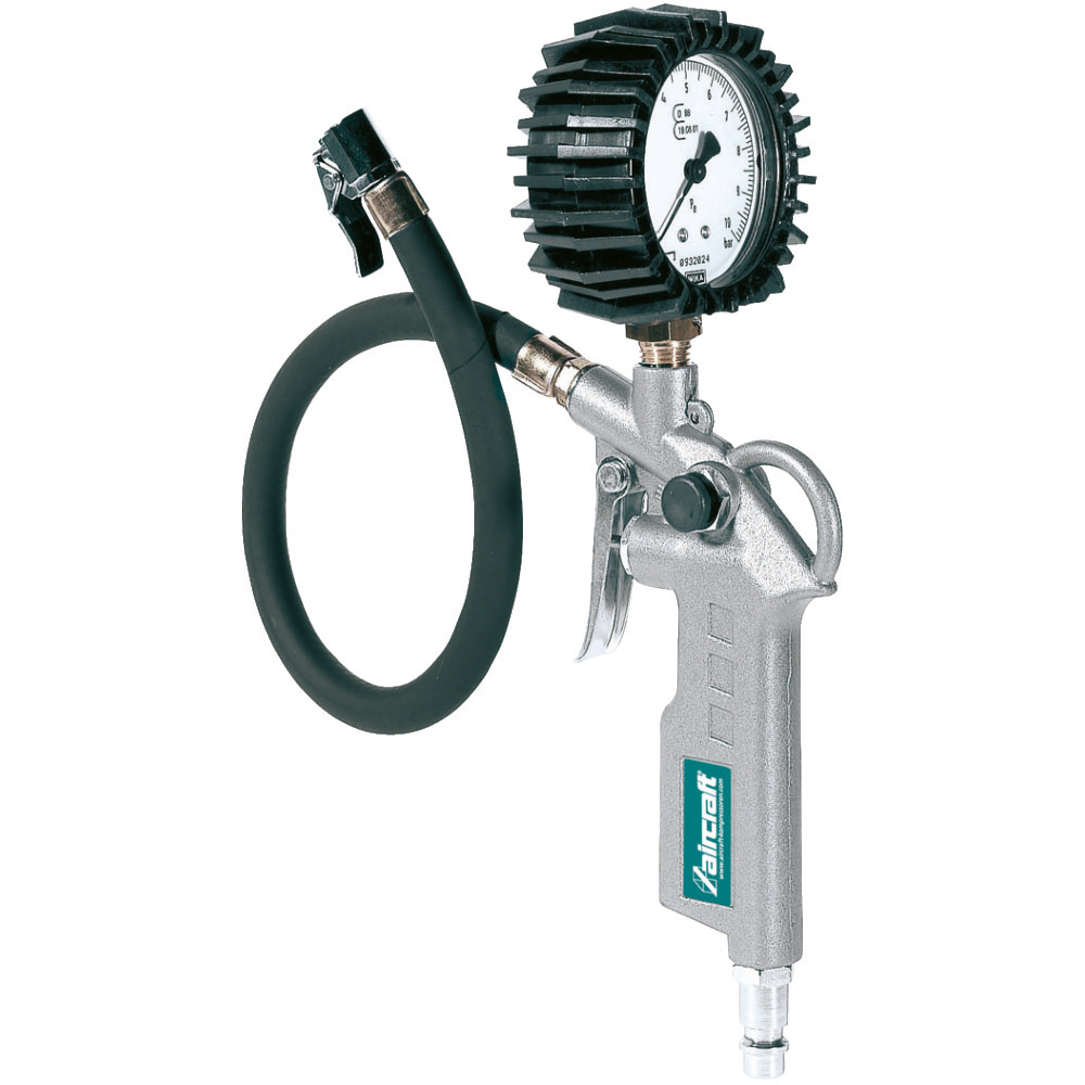 Zum raschen Befüllen und Kontrollieren des Reifendrucks in allen Reifen mit Standard-Füllnippel. Mit Manometer 63 mm Durchmesser, 0 bis 8,5 bar Anzeige und Gummischutzkappe.