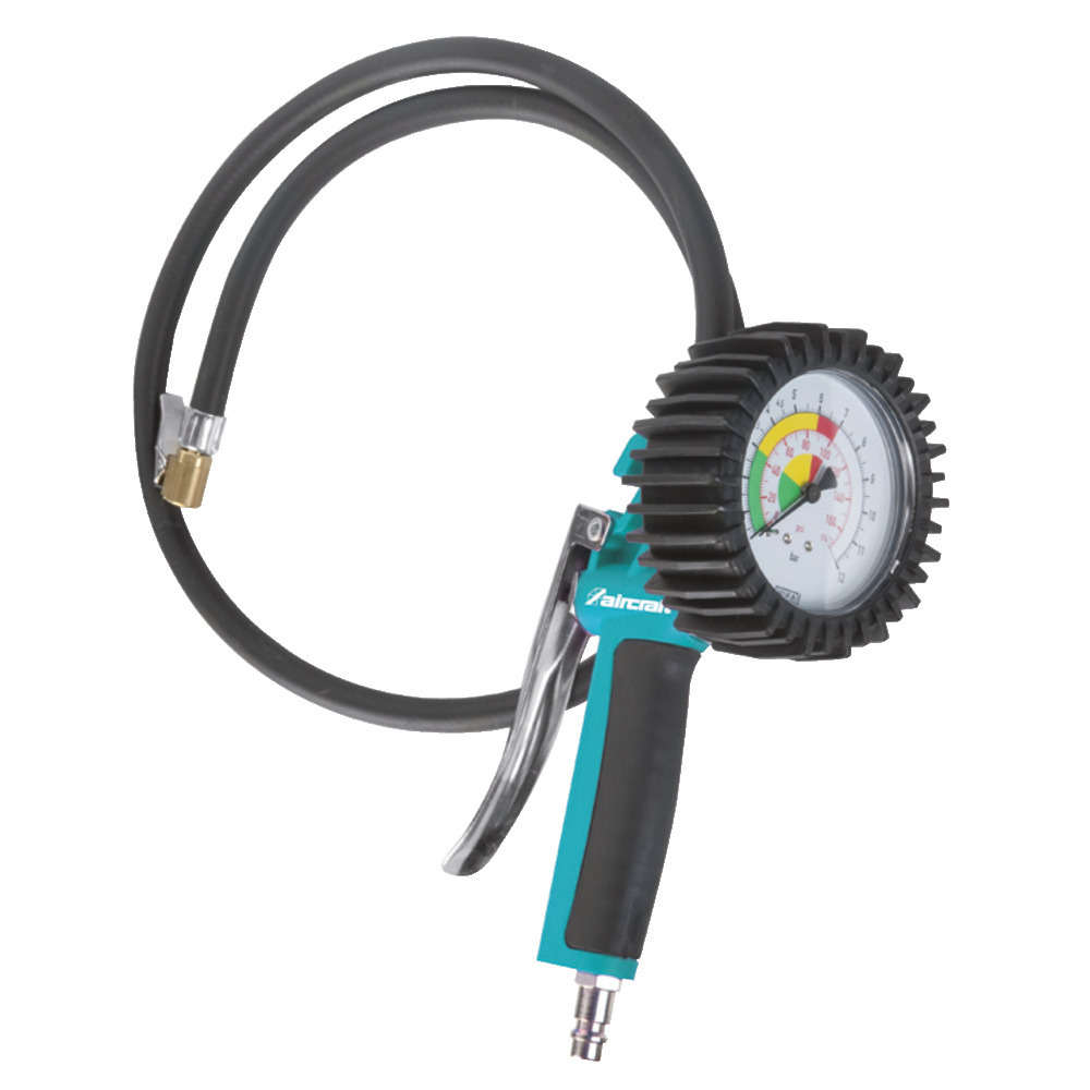 Sehr exakter Reifenfülldruckprüfer mit Manometer 0 bis 10 bar, Ø 80 mm und extra langem Schlauch.