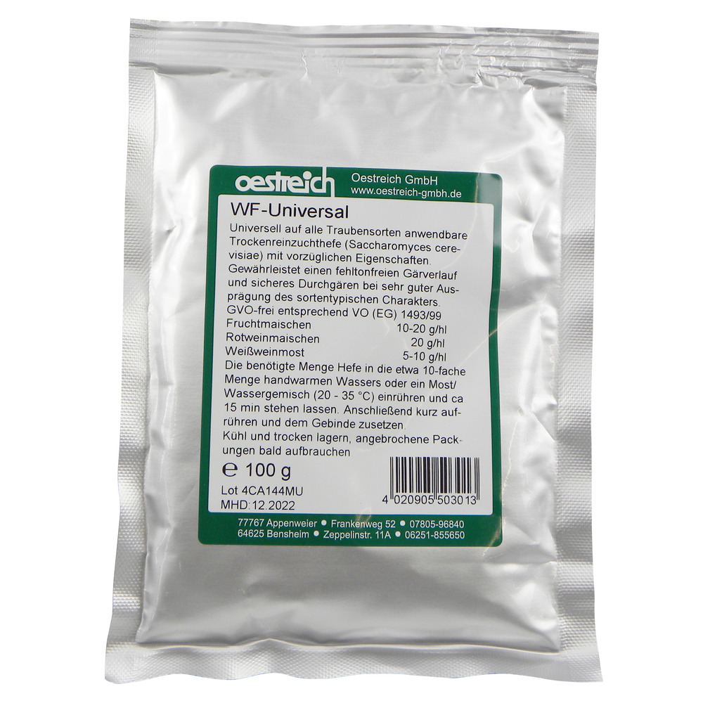 Universell auf alle Traubensorten anwendbare Hefe mit vorzüglichen Eigenschaften: rasches An- und sicheres Durchgären - geringe Bildung unerwünschter Gärnebenprodukte hohe Alkoholtoleranz - gute Ausprägung der sortentypischen EigenschaftenDosage: Weißweinmost 10 - 15 g/hlRotweinmaischen 20 g/hlFruchtmaischen 15 - 20 g/hl