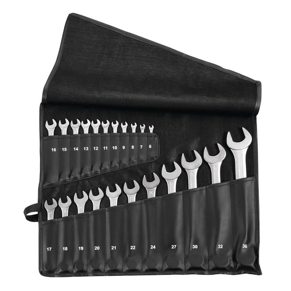 CV-Stahl · verchromt · mit gleichen Schlüsselweiten ·Ringseite 15° abgewinkelt, Maulstellung 15°DIN 3113 Form A / ISO 3318 / ISO 7738·Weitere technische EigenschaftenSchlüsselweite max.: 36 mm · Material: CV-Stahl · Norm: DIN 3113 Form A, ISO 3318, ISO 7738 · Schlüsselweite min.: 6 mm