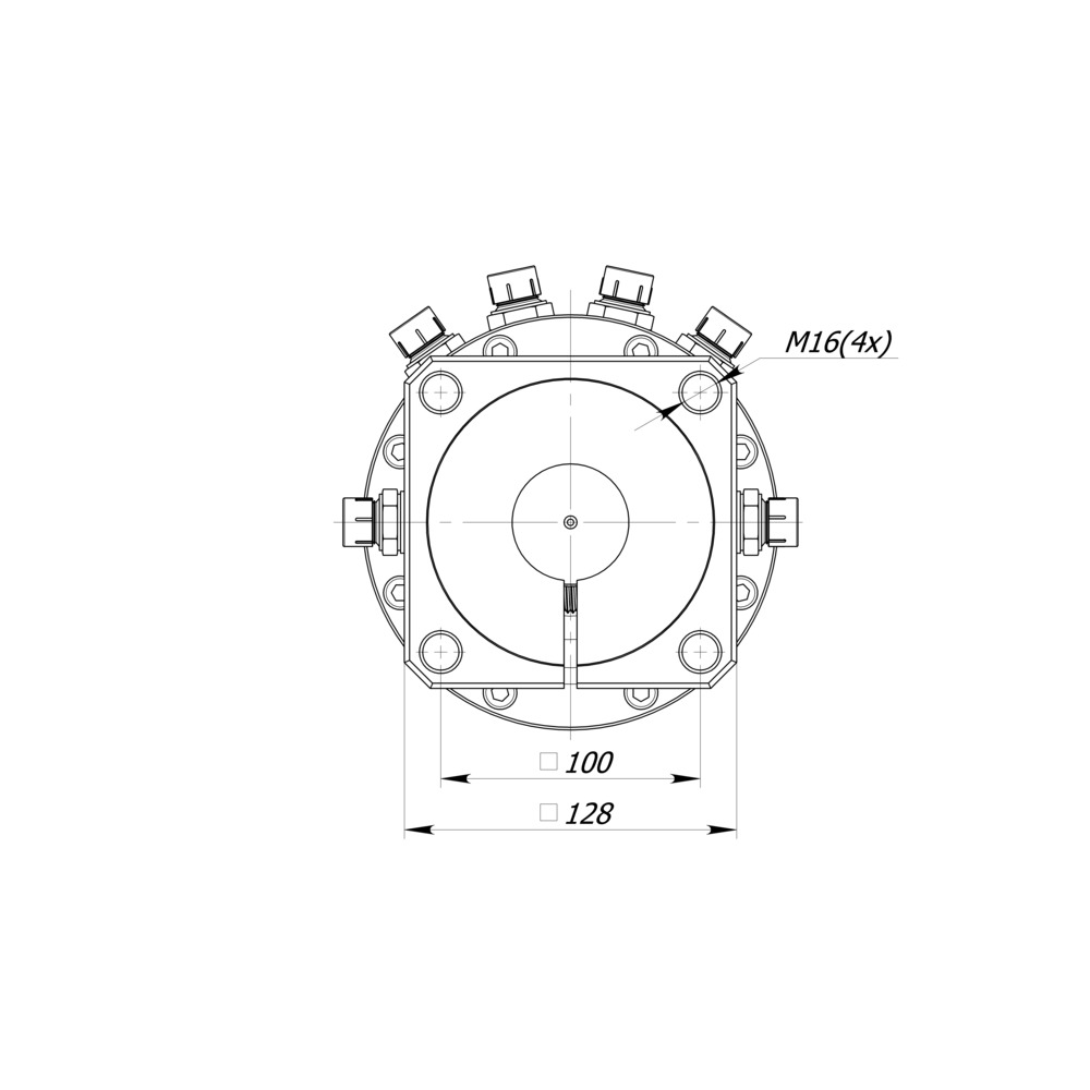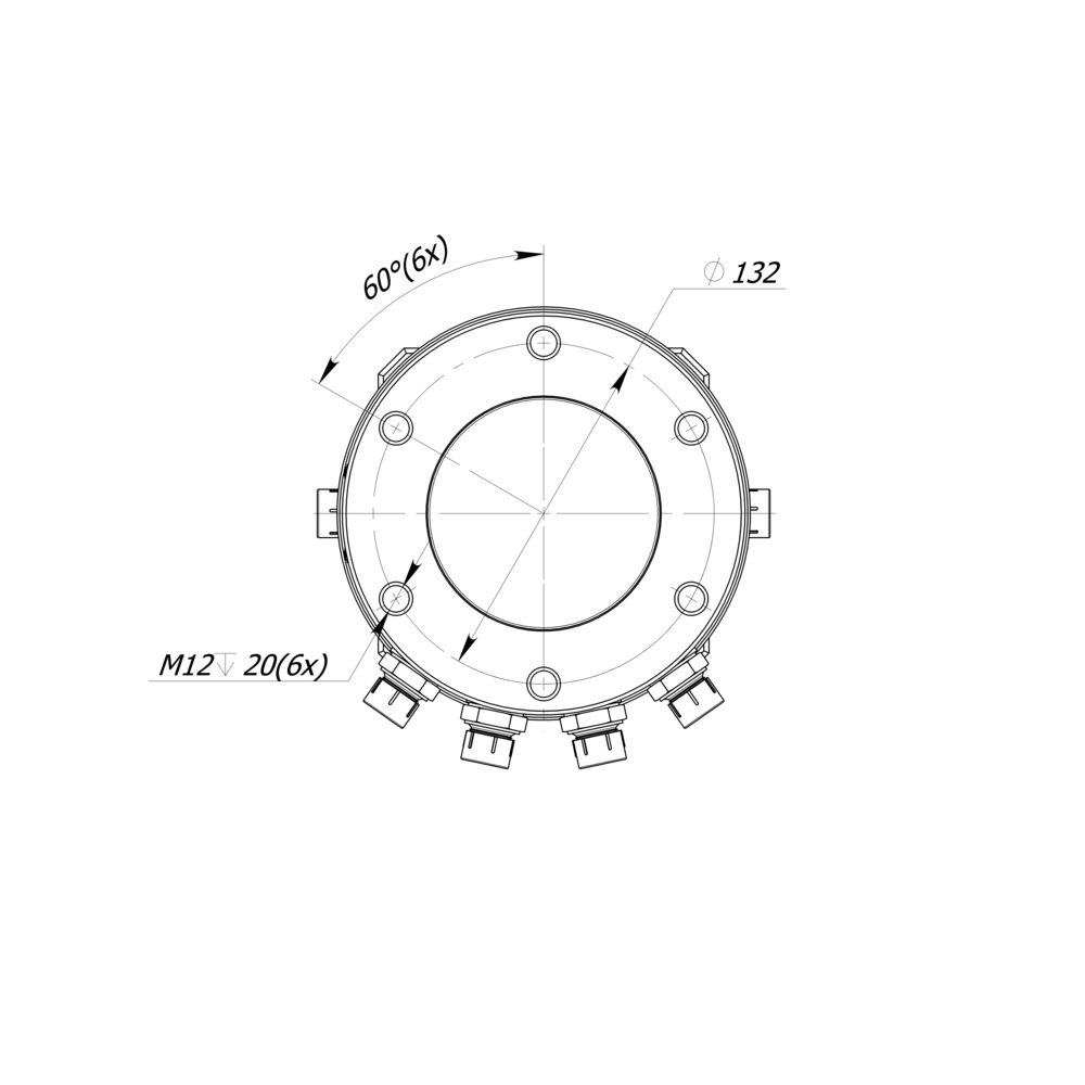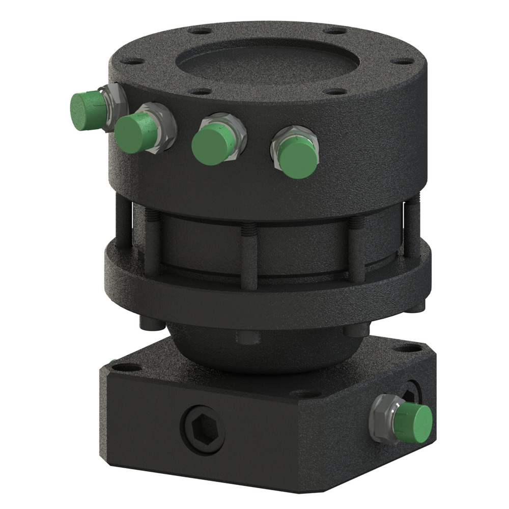 Der obere Flansch des Rotators ist als 6-Loch Flansch mit einem Lochkreis von 132 mm ausgeführt. Der untere Flansch des Rotators ist als 4-Loch Flansch mit einem Lochbild von 100 x 100 mm ausgeführt. Für den hängenden Einsatz an Rückewagen, Rückezangen, Frontladern oder Ähnlichem => nicht für den Einsatz an Baggern gedacht!!!