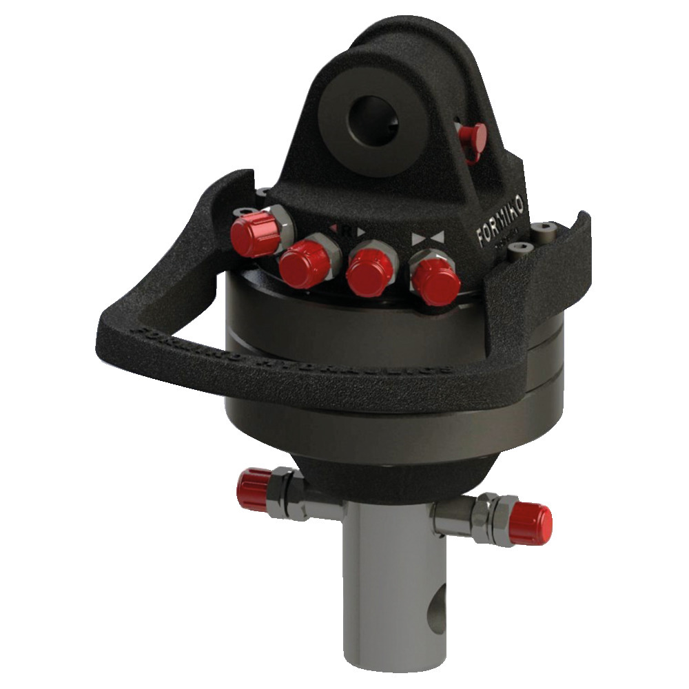 Endloser Drehbereich, für den Einsatz an Rückewagen, Rückezangen, Frontladern oder Ähnlichem.Mit Schutzbügel für die Zuleitungen, ohne Schläuchemit 49,5 mm Welle und 25 mm Bohrung, max. Axillast 3,0 Tonnen (statisch), 900 Nm bei max. 250 bar, max. 300 bar für Greifer schließen, max. 200 bar für Greifer öffnen, erforderlicher Ölfluß 20 Liter/min.,Anschluß 3/8 Zoll, Gewicht 20 kg.
