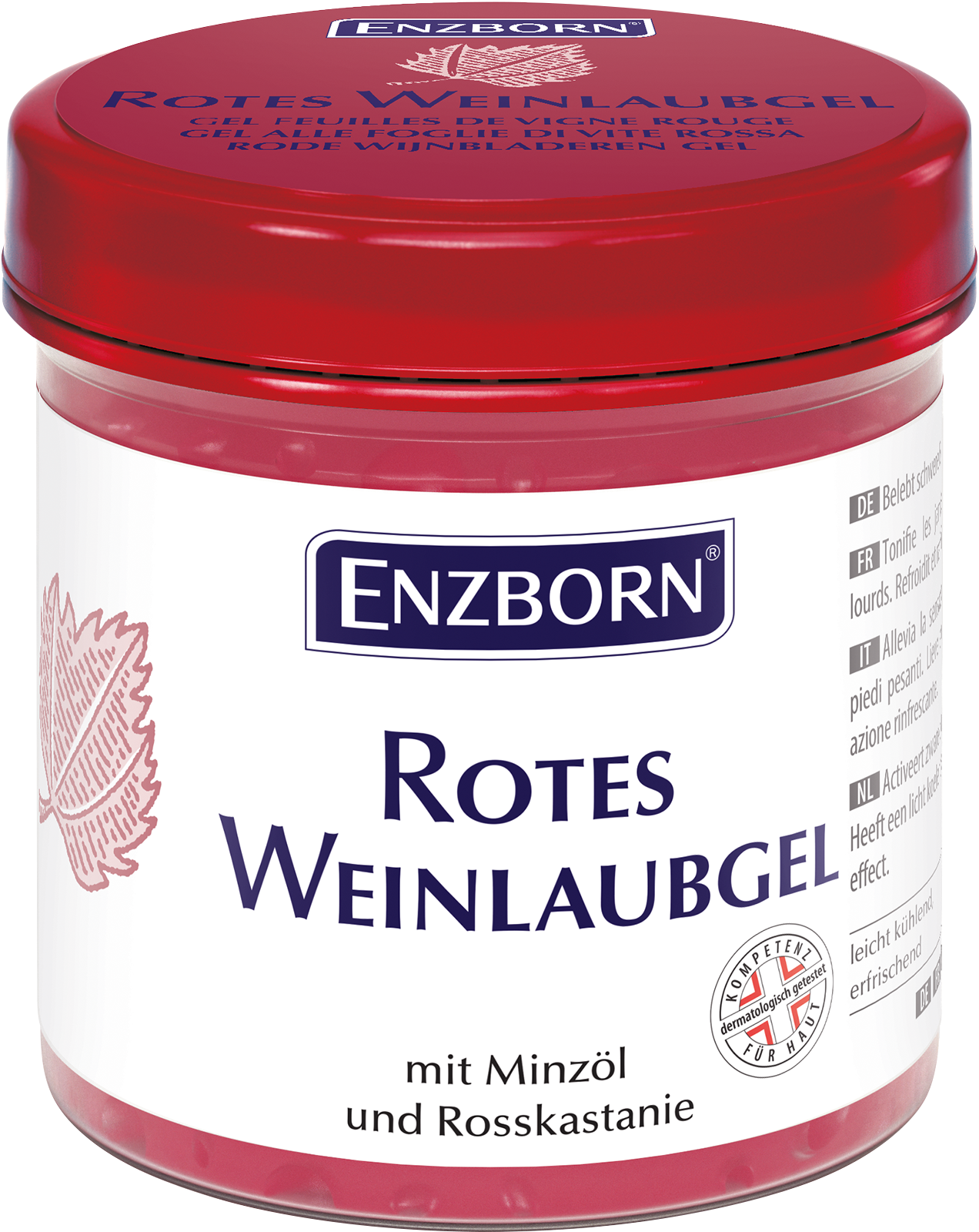 Schnelle Hilfe bei schweren und müden Beinen und Füßen.Langes Stehen und langes Sitzen im Büro, beim Autofahren oder auf Flugreisen sind häufig Ursachen für schwere und müde Beine und Füße. Gerade im Sommer in Verbindung mit hohen Temperaturen wird dieses Gefühl noch verstärkt. ENZBORN® Rotes Weinlaub Gel belebt Beine und Füße bei Schweregefühl und Müdigkeit. Die wirkungsvolle Formulierung aus Extrakten der roten Weinrebe, angereichert mit hochwertigem Minzöl und wertvoller Rosskastanie aktiviert und stimuliert die behandelten Stellen. Das Gel wirkt spürbar vitalisierend und ist durch die leicht kühlende Wirkung angenehm erfrischend.Inhaltsstoffe:AQUA, ALCOHOL DENAT., GLYCERIN, PROPYLENE GLYCOL, PEG-40 HYDROGENATED CASTOR OIL, CARBOMER, BENZYL ALCOHOL, SODIUM HYDROXIDE, VITIS VINIFERA (GRAPE) LEAF EXTRACT, MENTHYL LACTATE, AESCULUS HIPPOCASTANUM (HORSE CHESTNUT) SEED EXTRACT, CAMPHOR, DISODIUM EDTA, MENTHA ARVENSIS LEAF OIL, DEHYDROACETIC ACID, L-(+)-LACTIC ACID, POTASSIUM SORBATE, SODIUM BENZOATE, D-LIMONENE, CI 19140, CI 16255, ESCULIN