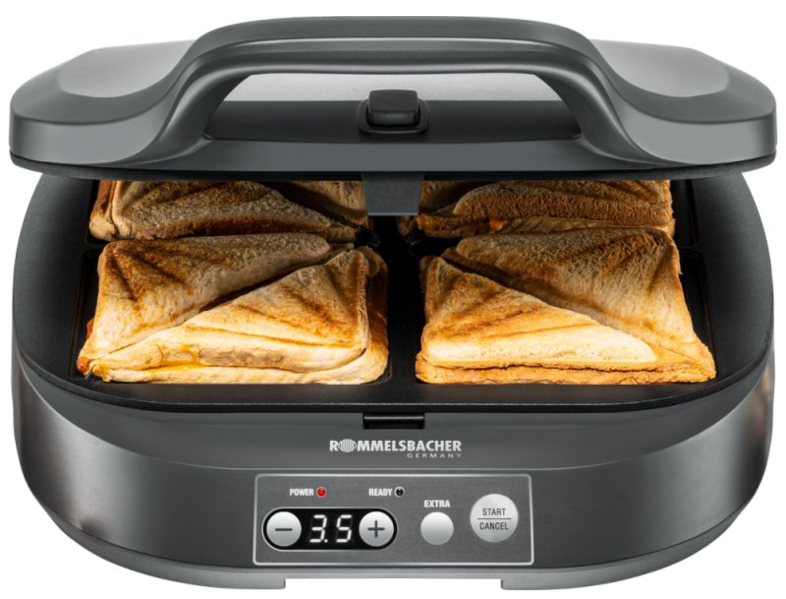 In kurzer Zeit bereitest du bis zu vier knusprige Sandwiches gleichzeitig zu.