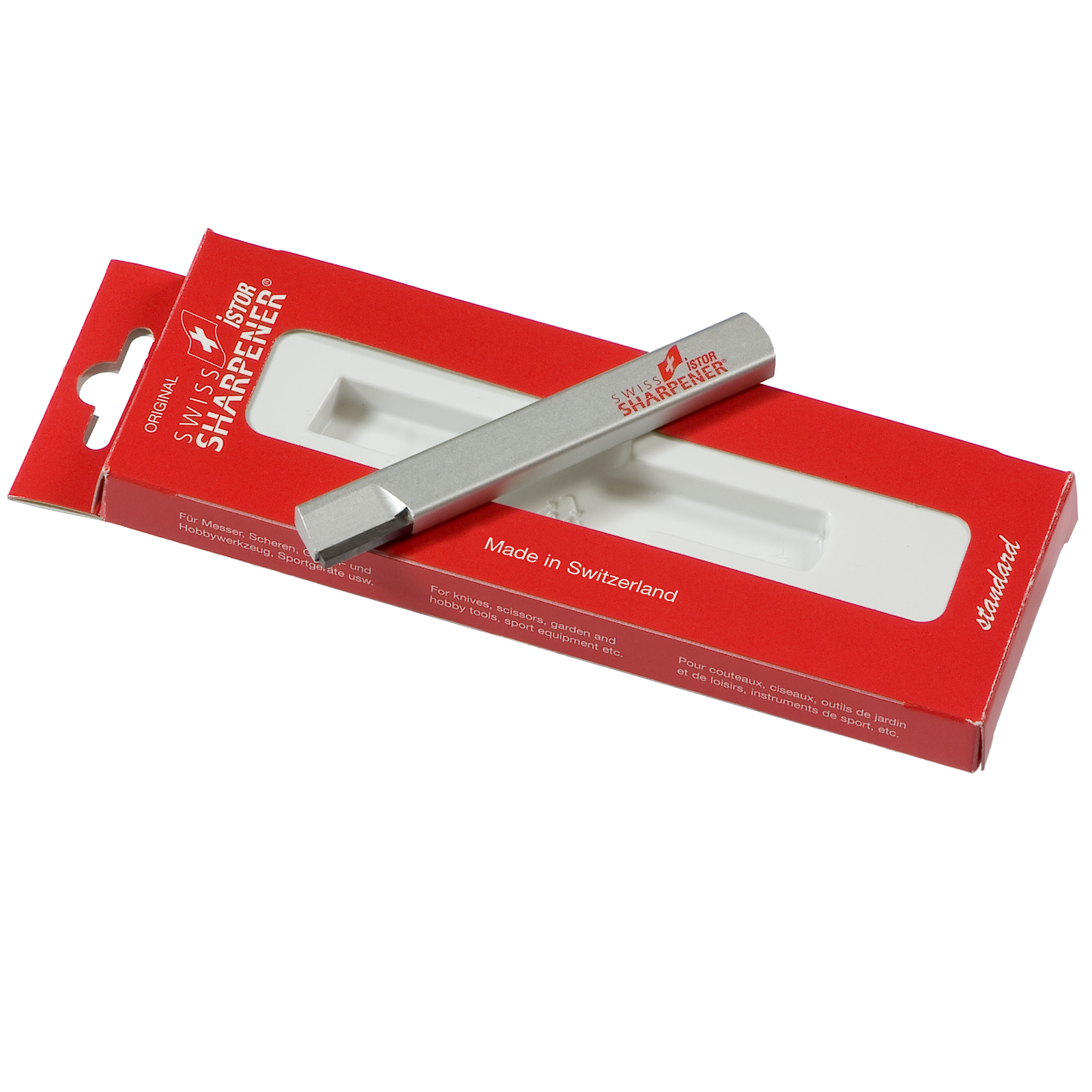 Das original Schweizer Schärfgerät für Haus, Hof und Garten.Besonders geeignet zum schärfen kleiner Messer und Scheren im Haushalt sowie für Huf- und Klauenmesser.Länge 10 cm.Gewicht 24 g.5 Jahre Garantie auf Material- Fabrikationsfehler.