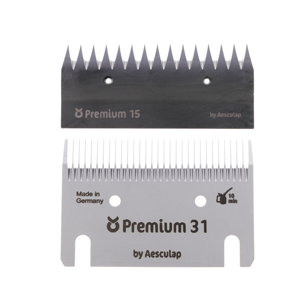 Für die Schur von sauberem bis leicht verschmutztem Fell bei Pferden und Rindern; Resthaarlänge 2-4 mm. Untermesser 31 Zähne, Obermesser 15 Zähne. Für alle FarmClipper Schermaschinen geeignet!