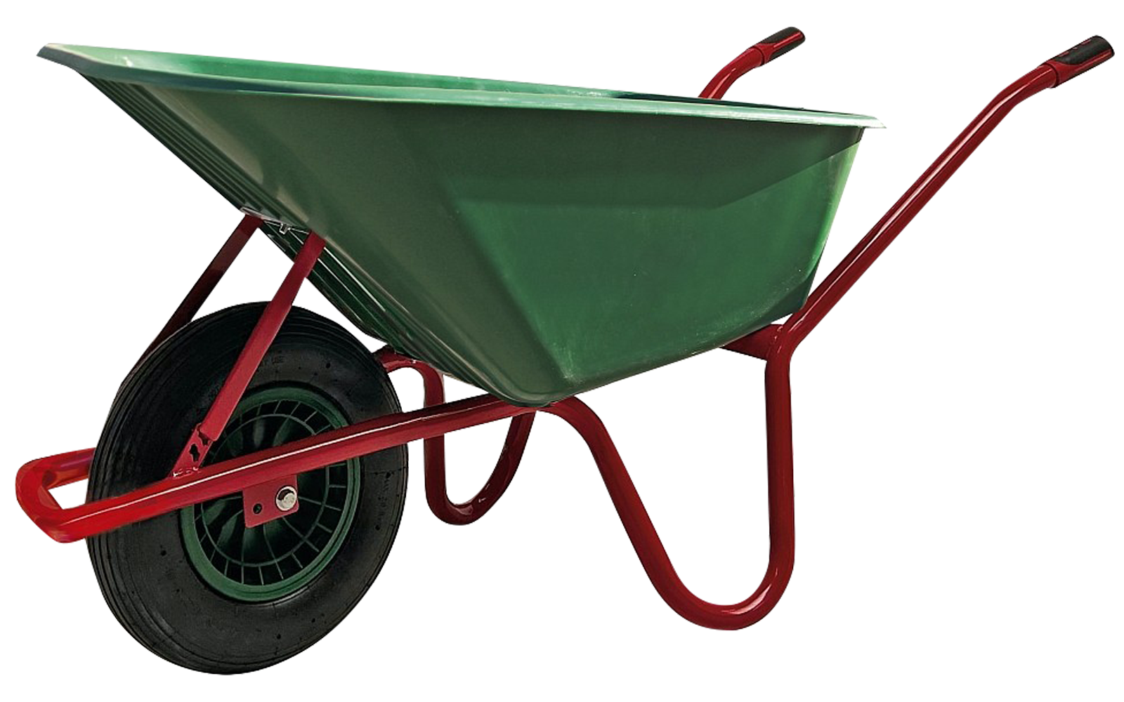 Leichte Schubkarre mit 100 L Kunststoffwanne und Rad mit hochwertiger Kunststofffelge.