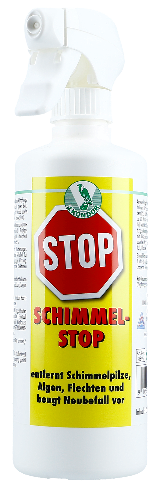 Flüssiges Desinfektions- und Algenmittel – gebrauchsfertig und vielseitig einsetzbar.Es wirkt zuverlässig gegen Bakterien, Pilze (z. B. Candida), sowie gegen behüllte und bestimmte unbehüllte Viren wie Papovaviren.Ideal zur Behandlung von Schimmelbefall in Fugen und auf Oberflächen.Anwendung:Einfach aus ca. 10 cm Entfernung satt aufsprühen – Schimmel vorher nicht entfernen! Etwa 20 Minuten einwirken lassen. Bei starkem Befall oder in Fliesenfugen und Silikonverbindungen den Vorgang ggf. wiederholen. Bei Bedarf mit einer Bürste nacharbeiten. Rückstände gründlich mit Wasser abspülen.Nicht geeignet für Holz, Textilien, Leder, Kork oder Pflanzen.Schimmelstop vorsichtig verwenden. Vor Gebrauch stets Kennzeichnung und Produktinformation lesen.Inhalt: 0,5 LiterBAuA-Nr.: 86520