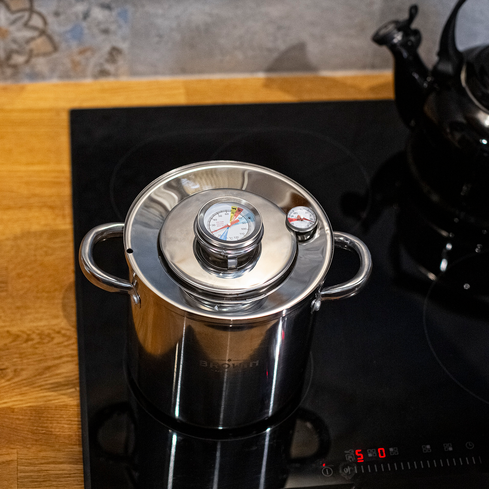 Moderne und gesunde Küche - Sie entscheiden, aus welchen natürlichen Zutaten Sie Ihren köstlichen Wurstwaren selber machen - gepökelt oder nicht gepökelt. Der Schinkenkocher ist ideal auch für die Zubereitung vegetarischer Gerichte.Innovative Konstruktion - dank dem speziellen Design ruht der Schinkenkocher auf einem Flansch und berührt den Topfboden nicht, sodass das Wasser den Schinkenkocher umhüllt und einen sog. Wassermantel bildet, der bewirkt, dass das zubereitete Essen saftig ist und dazu beiträgt, dass es gleichmäßig abgebrüht wird.Er wurde aus hochwertigem Edelstahl gefertigt.Der perfekt sitzende Flansch verhindert, dass das Wasser verdunstet, Sie müssen die Wassermenge nicht kontrollieren, nachfüllen oder Verbrühungen befürchten.Universell - Sie können im Schinkenkocher auf einmal maximal 1,5 kg Einlage zubereiten, z.B. klassische Schinken, Rouladen, Frühstücksfleisch oder vegane Pasteten.Der Hersteller präsentiert einen Schinkenkocher mit Topf zum Brühen im Wassermantel – ein ideales Produkt für die Zubereitung von Fleisch- und vegetarischen Gerichten ohne einen zusätzlichen Topf.Das Set besteht aus 6 Teilen:4-Liter-Topf für alle Herdarten geeignet, Flansch, 1,5-kg-Schinkenkocher, Füllbeutel (10 Stück), zwei Thermometer: Eins zur Kontrolle der Fleischtemperatur im Schinkenkocher und das Zweite zur Kontrolle der Wassertemperatur.Ist spülmaschinenfest.Abmessungen: Schinkenkocher:· Ø 10 cm· Höhe 17 cm Topf:· Ø 17,5 cm· Höhe 17,7 cm·Gesamthöhe des Sets – Topf mit Schinkenkocher - 20 cmDas Produkt ist beim europäischen Patentamt registriert worden.