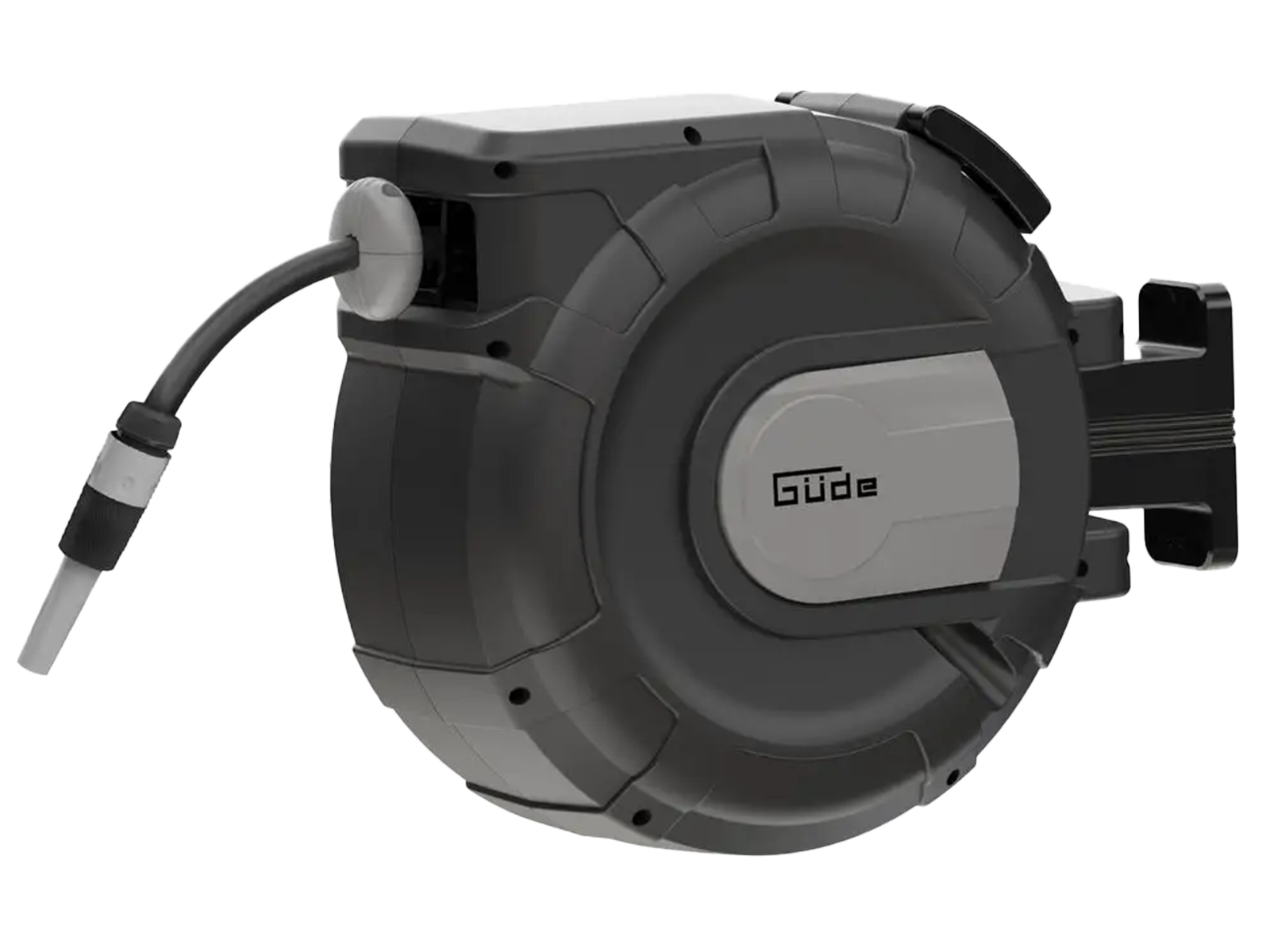 Automatischer Schlauchaufroller mit Schwenkbarer Wandhalterung. Der Aufroller ist für die frostsichere Aufbewahrung in Sekunden von der Halterung zu lösen. Die Einzugsautomatik mit Führung sorgt für einen sicheren Einzug. Komplett Ausgesattet mit einen hochwertigen 20m 1/2 Zoll Schlauch, einer verstellbaren Wasserspritze, sowie 2m Anschlussschlauch mit Kupplung.