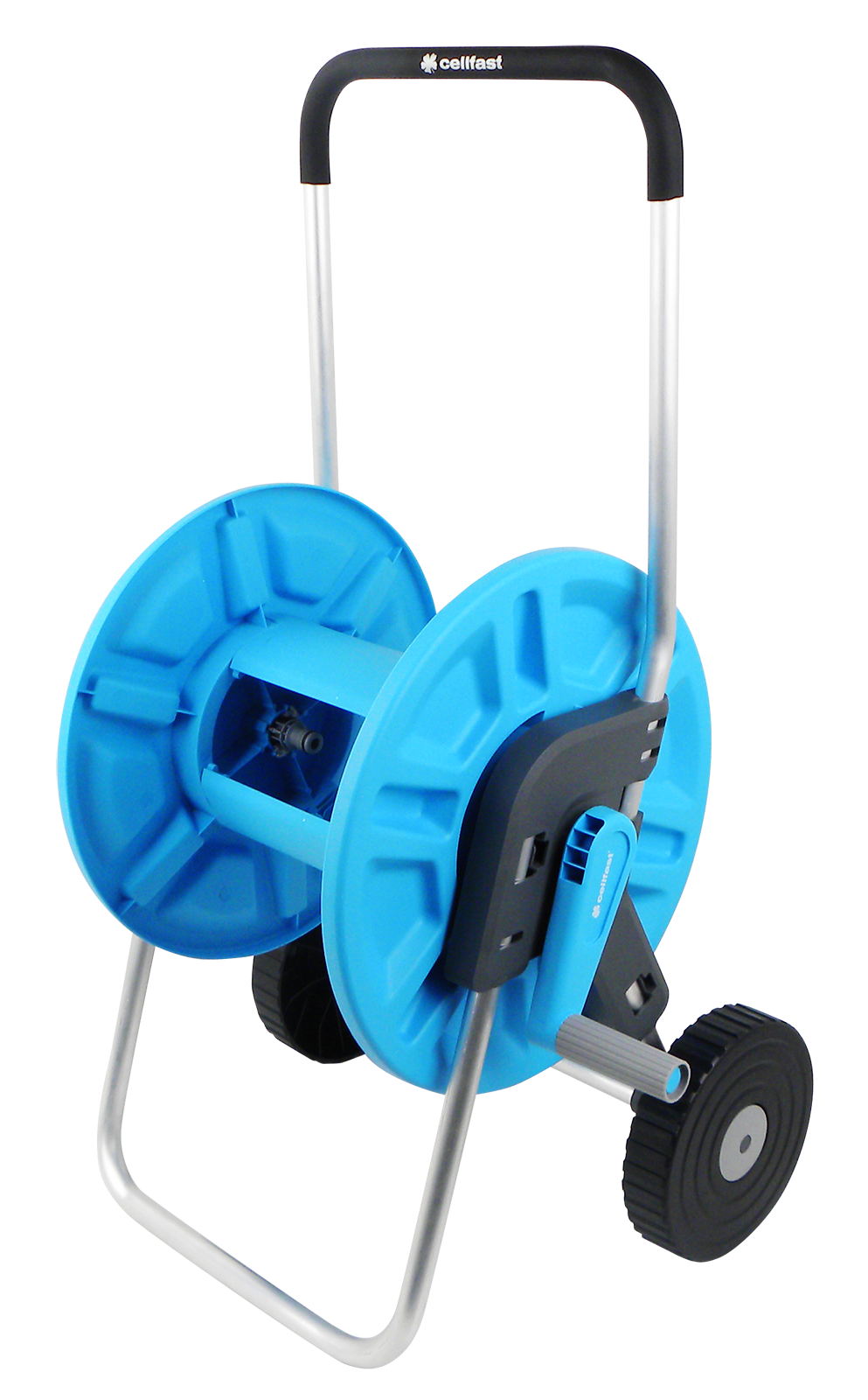 Kompakter Schlauchwagen aus Alu/Kunststoff mit großen Räder für einfachen Transport. Geeignet für 60m 1/2 Zoll oder 30m 3/4 Zoll Schlauch. Lieferung ohne Schlauch.