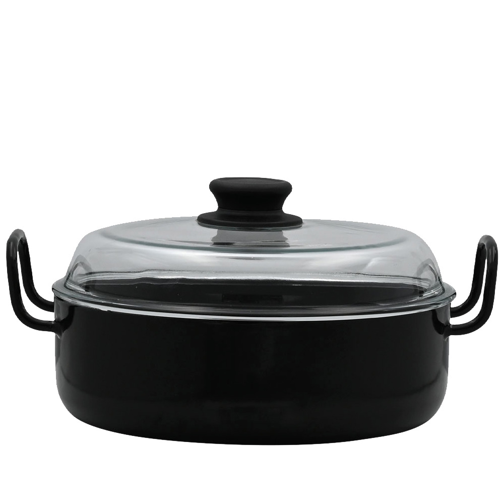 - Schmorpfanne aus Schwarzemaille mit zwei Emaillegriffen
