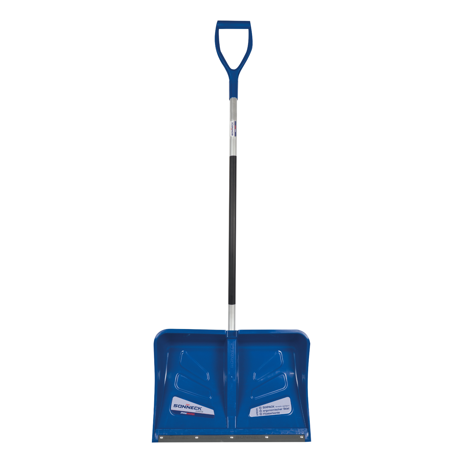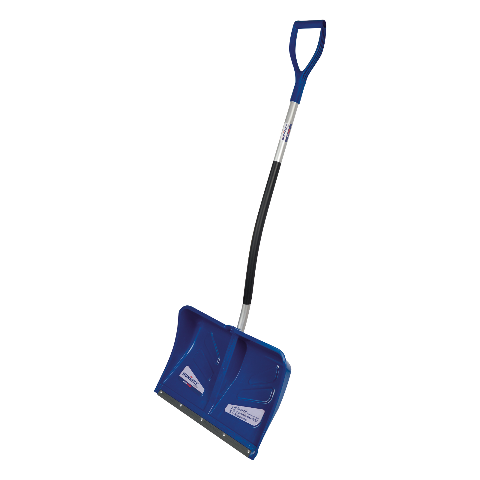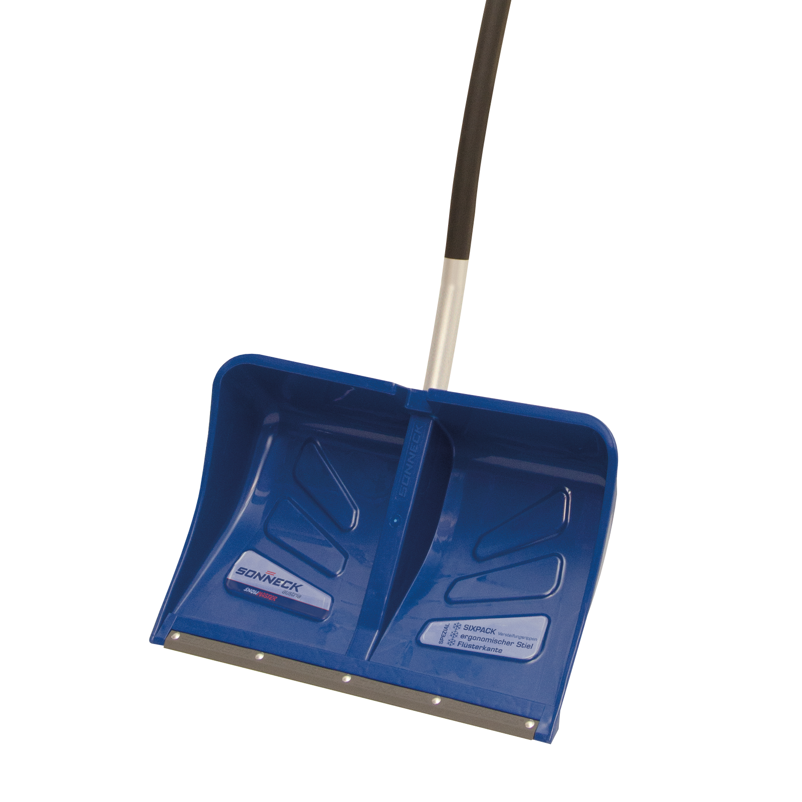 Robuste, aber leichte Schneeschaufel mit 55 cm Breite.Kältefester Spezialkunststoff mit Stahlkante für leichtes Arbeiten und guten Eingriff bei festem Schnee.Weniger Ermüdung durch den ergonomischen geformten Metallstiel mit D-Griff.