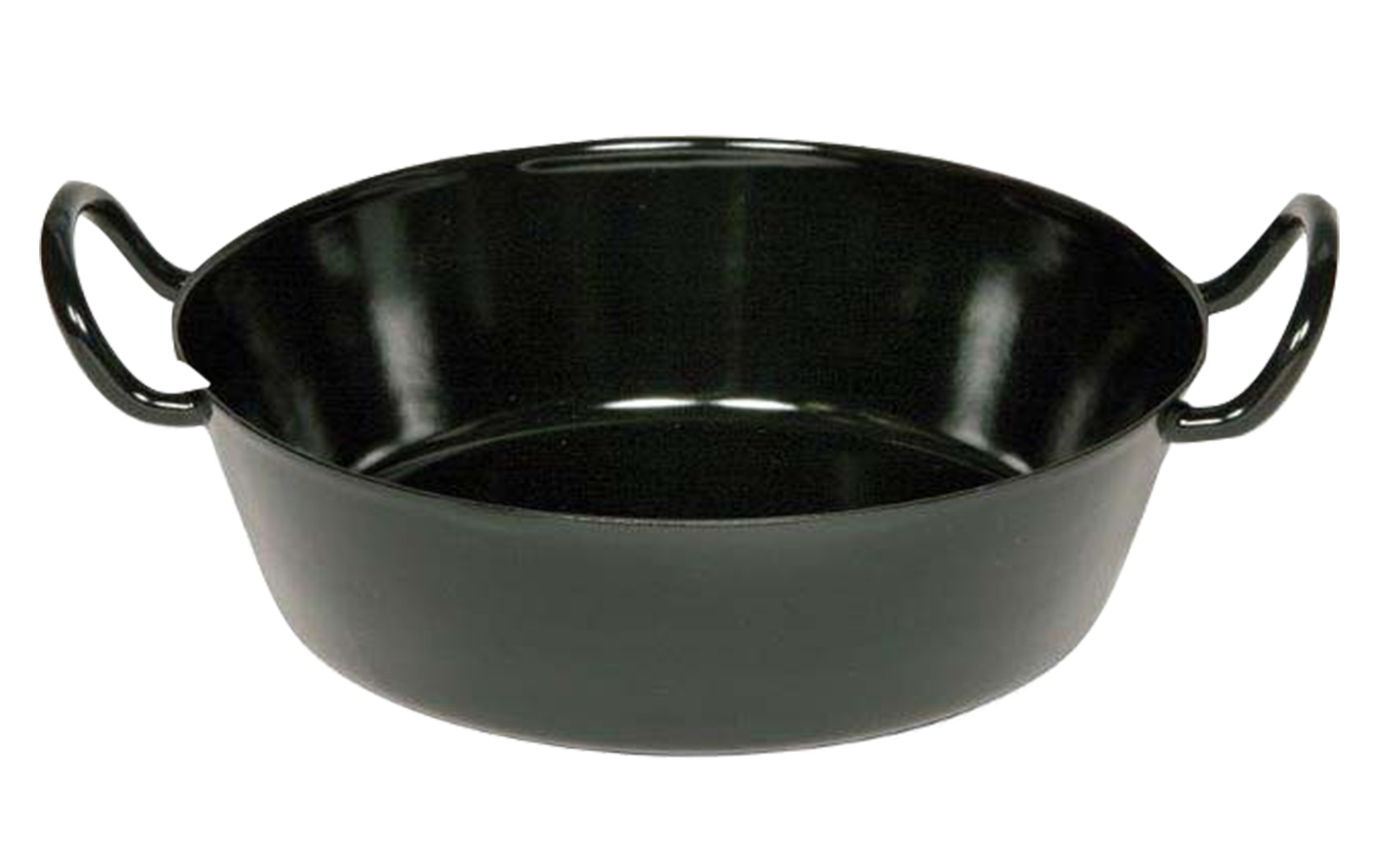 Aus Schwarzemail mit Henkel. Ideal auch zum Krapfen herausbacken. Für den kleinen und großen Haushalt. Auch für Induktion geeignet! Ø 20 cm Höhe mit Griff 8,1 cm ohne 6 cm.