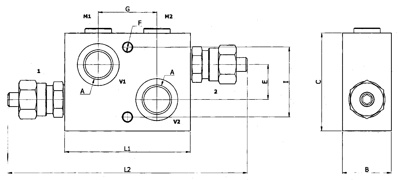 Produktinformationen "Schockventil doppeltwirkend, Durchfluss 35 L/min, max. Druck 350 bar, mit Manometeranschluss"