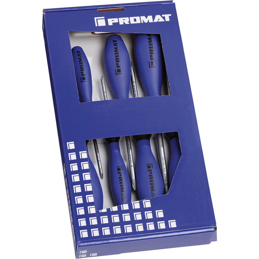 Weitere technische Eigenschaften Verpackung: im KartonInhalt: 1 Schraubendreher für Schlitzschrauben 5,5 x 125 mm je 1 Schraubendreher für Schrauben mit Kreuzschlitz (PH), Gr. 1 x 80 / 2 x 100 / 3 x 150 mm je 1 Schraubendreher für Schrauben mit Kreuzschlitz(PZD), Gr. 1 x 80 / 2 x 100 / 3 x 150 mm