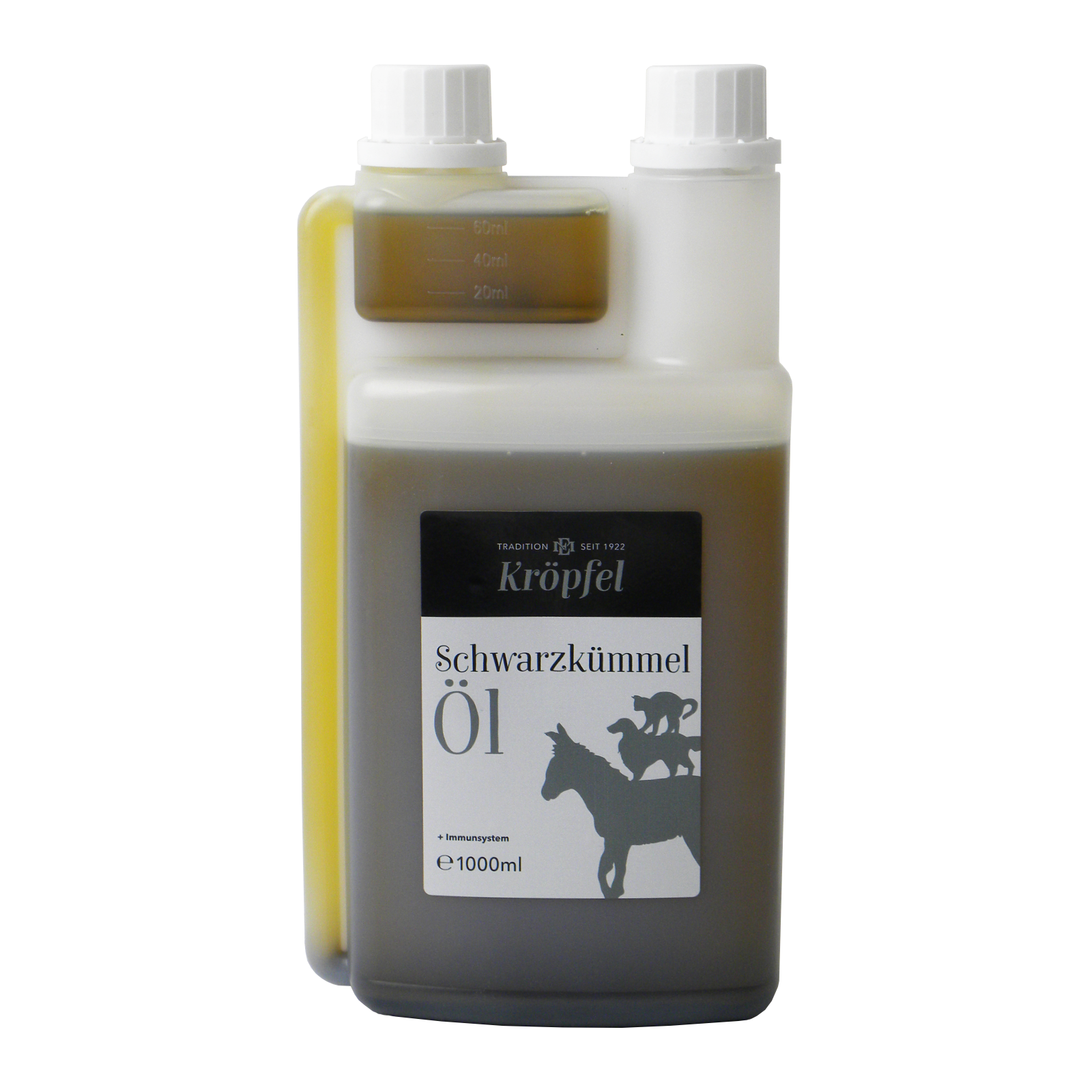 Verwendung: Pferde, Hunde, KatzenAnalytische Bestandteile: Rohfett 100 %, Rohfaser 0 %. ErnährungsphysiologischerZusatzstoff/kg: 6.700 mg natürliches Vitamin E pflanzlicher Herkunft.Fütterungsempfehlung: Die empfohlene Menge zum täglichen Futter zugeben.Kleine Hunde: 5-10 Tropfen (0,5-1 ml)Mittlere Hunde: ½ Teelöffel (1,5 ml)Große Hunde: 1 Teelöffel (3 ml)Pferde erhalten je nach Körpergröße ½-1 Dosierbecher (10-20 ml) pro Tag.Nicht an trächtige Tiere verfüttern. Bei der Einnahme von Medikamenten oder bei einer Beeinträchtigung der Leber sollte Schwarzkümmelöl nur nach Rücksprache mit dem Tierarzt gefüttert werden.Zur äußerlichen Pflege können Bereiche welche häufig von Parasiten befallen werden, mit einigen Tropfen Schwarzkümmelöl eingerieben oder mit einem Wasser-Öl-Gemisch besprüht werden.