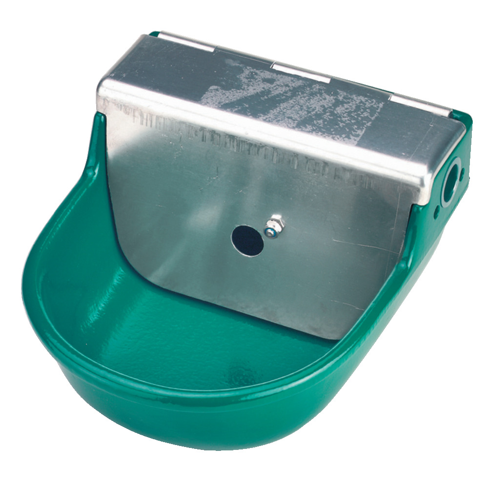 Grün pulverbeschichtetes Graugussbecken mit Schwimmerventil für die normale, Hochdruck-Wasserleitung (1,1 bis 5 bar), Beckenvolumen 2 Liter, Schwimmerabdeckung aus nicht rostendem Edelstahl, Gewicht 6 kg. Wasserdurchfluss 6,5 Liter/Minute bei 2-3 bar. 1/2 Zoll Anschluss von links oder rechts möglich.