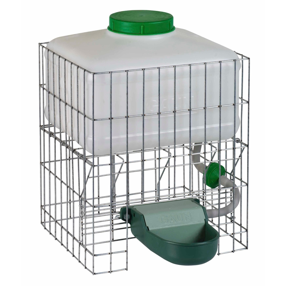 Schwimmertränke (0,4 L) für Geflügel und kleine Haustiere, inkl. Schutzgitter mit integriertem Tank, 10 l. Einfach Tank auffüllen und Ihre Tiere haben immer frisches Wasser! Maße (B x T x H) gesamt: 28,5 x 36 x 38,5 cm; Maße Tränke: 12 x 16 x 6 cm