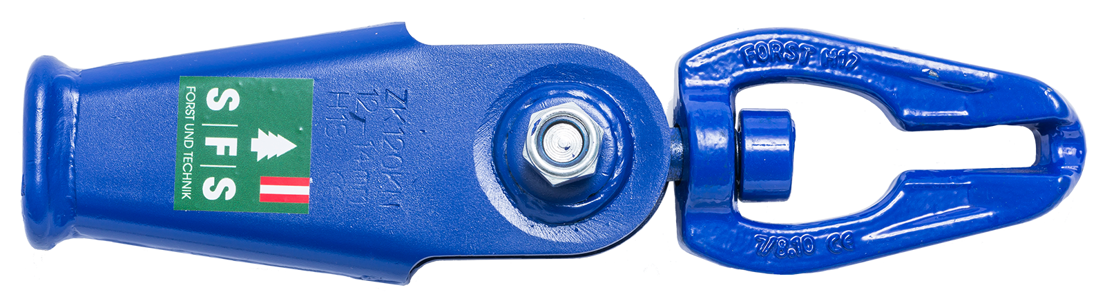 Verstärktes Seilschloss mit drehbarer, gerader Lasche, dadurch besonders ketten- und seilschonend,beidseitig ohne Abminderung der Zugkraft verwendbar,kein Eindrehen der Kette,für Seildurchmesser 12 - 14 mm,für Ketten mit 10 mm Gliedstärke8.000 daN zul. Zugkraft,Länge: 28 cm,Gewicht: 1,78 kg.