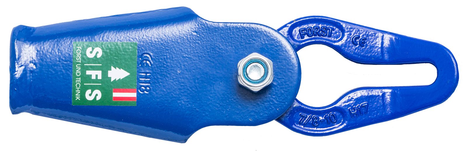 Seilschloss mit der Rückhängelasche des Seilgleitbügels GB 8,für Seildurchmesser 8 - 12 mm,für 7 / 8 mm Ketten verwendbar,6.000 DaN zul. Zugkraft,Länge 23 cm,Gewicht 1,3 kg.