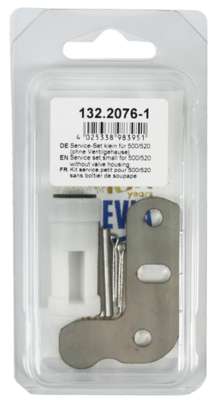 Service-Pack bestehend aus: Edelstahlwinkel, Bolzen+Splinte, Kunststoffventileinsatz mit Gummidichtung.