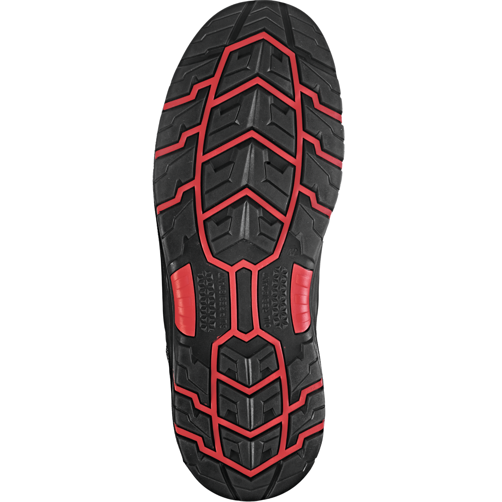 antistatische, öl- und säurebeständige, rutschhemmende, trittfeste 2-Schichten PU/Gummi-Laufsohle, hitzebeständig bis 300°C, mit integrierter Überkappe