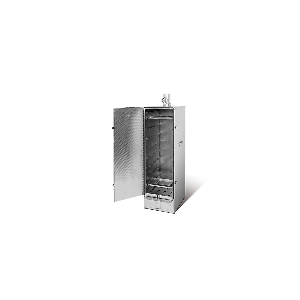 Hochwertige Materialien: Der Räucherofen besteht aus geprägtem Edelstahlblech (Material 1.4016). Dieses Material ist langlebig, korrosionsbeständig und leicht zu reinigen.