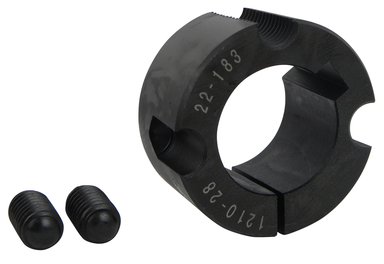 Taper-Spannbuchse mit metrischer, zylindrischer Fertigbohrung und Passfedernut, für eine kraftschlüssige Welle-Nabe-Verbindung.Die Klemmbuchse schafft eine Verbindung zwischen Welle und Bauteil, z.B. Zahnrad, Kettenrad oder Keilriemenscheibe. Mit diesen System ist ein kostengünstige und zuverlässige Kraftübertragung auf Ihr Gerät möglich.Die Taper-Spannbuchse hat eine metrischer, zylindrischer Fertigbohrung und stellt mit Passfedernut und Spannschrauben eine kraftschlüssige Verbindung zwischen der Motor-oder Gerätewelle und der jeweiligen Keilriemenscheibe her. Durch dieses System ist eine Drehzahländerung schnell und ohne großen Aufwand möglich.