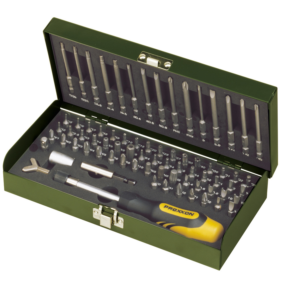Eine durchdachte Zusammenstellung aller möglichen und ″unmöglichen″Bits. Löst praktisch alle Spezialschrauben in Haushalt, Werkstatt oder Gewerbe. Alles in Proxxon-Industrial-Qualität. Komplett in stabiler Box.