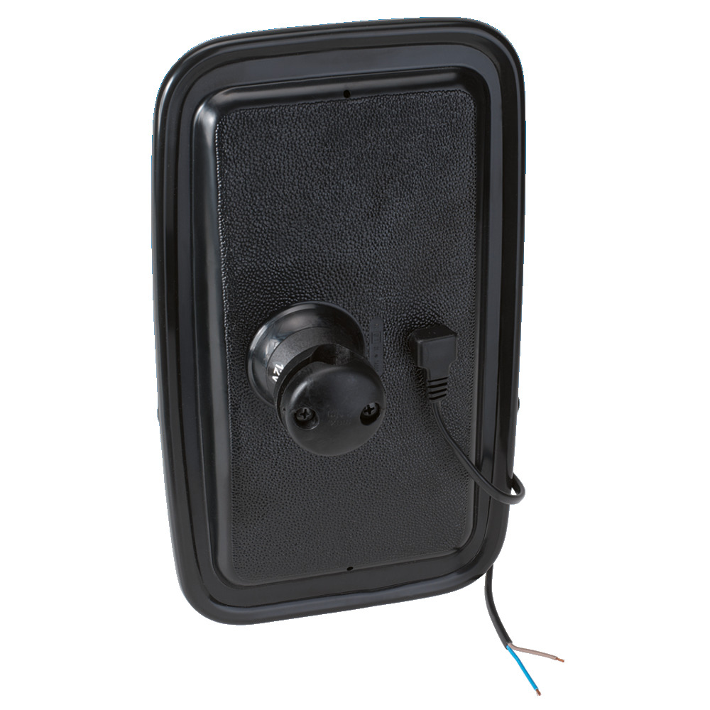 Länge: 318 mm, Breite: 186 mm, schwarzes ABS Kunststoffgehäuse, Spannung 12V, Verwendung: links/rechts, Klemmhalter für Stange Ø 14-20 mm.