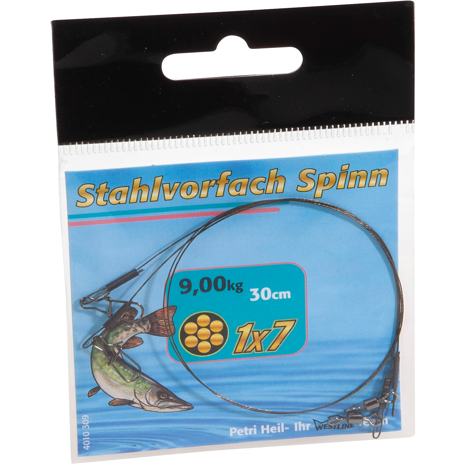 Dieses sehr geschmeidige Spinnvorfach ist mit einem Wirbel und einem Snap ausgestattet!Material 1x7 fädig, die 7 Einzelfäden sind zu einem sehr geschmeidigen und weichem Stahlvorfach verflochten! Ein ideales Stahlvorfach für Hechte aber auch für Zander! Inhalt – 2 Stk pro Packung, Länge: 30 cm, Tragkraft: 9 kg