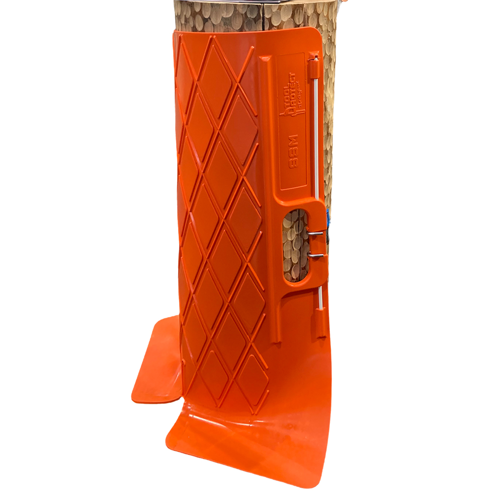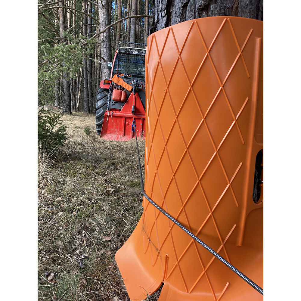 Anwendbar für Stammdurchmesser von ca. 30 bis 110 cm. Durch die geschlitzte Unterseite können auch Wurzelansätze sehr gut vor vorbeigleitendem Blochholz geschützt werden!