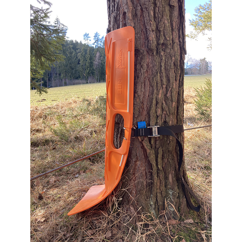 Elastische, verschleißfeste TOOLPROTECT SSM Schutzmatte! Sie wird mittels einem speziellen Gurt am Baumstamm positioniert und fixiert. Die Matte schützt den Baum und dessen Rinde vor Punkt- und Linienlasten, indem die einwirkenden Kräfte im Material großflächig verteilt wird. Durch die hervorragenden Gleiteigenschaften rutschen Seile von Seilwinden wie auch Blochholz selbst ganz einfach über die Matte hinweg.