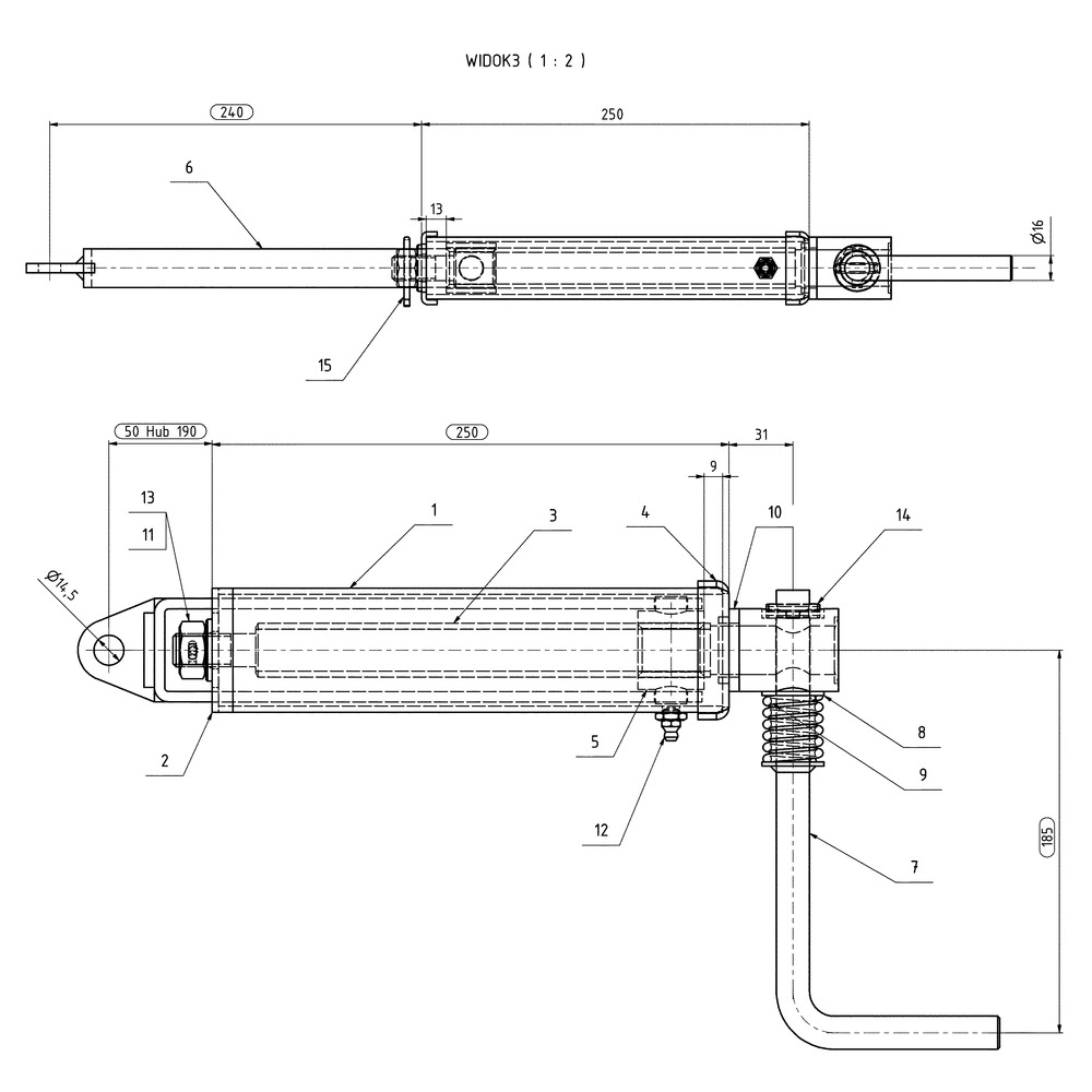 Mit Kurbel 185 mm klappbar, Öse 14,5 mm, Schmiernippel
