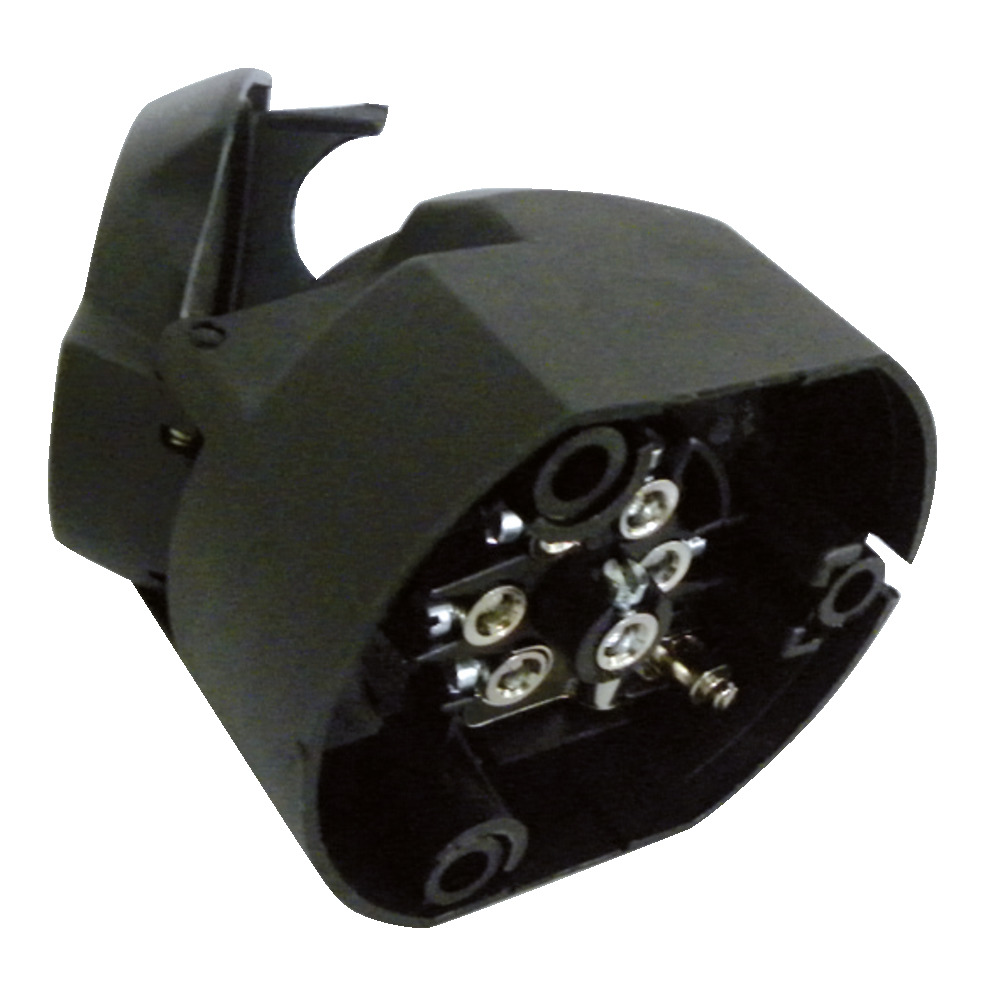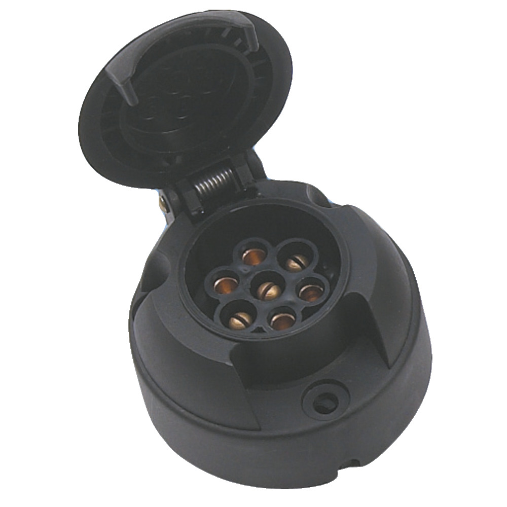 12 V, 7-polig, mit abschaltbaremKontakt für Nebelschlussleuchte am Motorwagen.