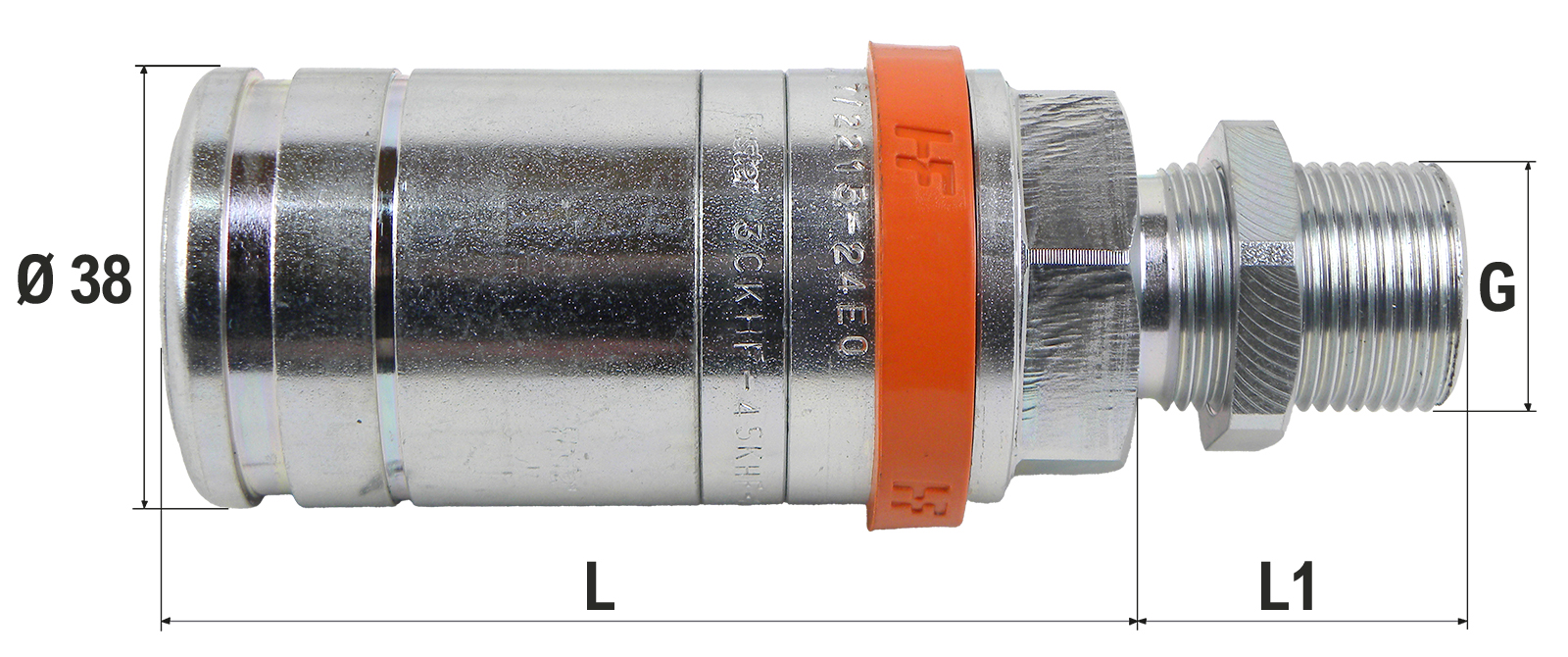 Steckkupplung in Push-Pull Ausführung passend zu den Serien von Fendt SCR, S4, Gen6. Länge (ohne Gewinde) L: 80 mm L1: 30 mm Schottgewinde 15L Baugröße: BG 3 Normbezeichnung: ISO 7241-1 A