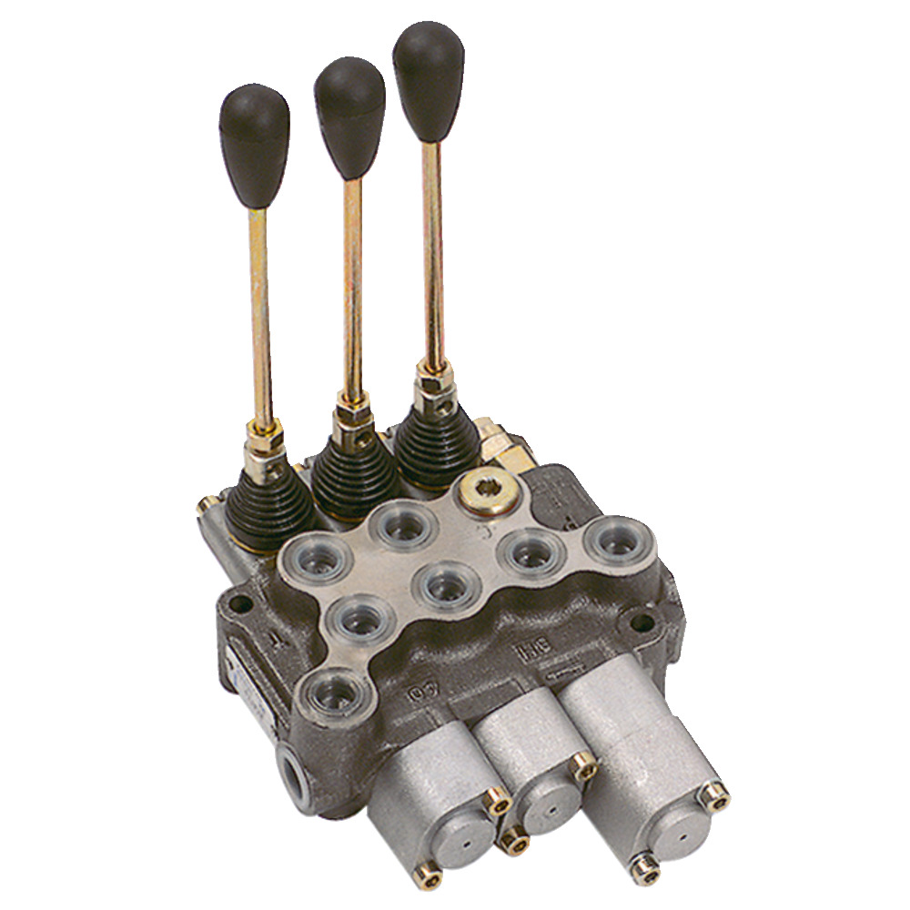 Mechanische Betätigung mit Federrückstellung in Standardausführung. Die Mittelstellung ist mit einem drucklosen Umlauf ausgeführt und die Anschlüsse A & B sind gesperrt. Druckbegrenzungsventil am Anschluss P (Pumpe). Negative Überdeckung der Schieber.1. Steuerschieber einfachwirkend DW-SWR: H=Heben, 0=Mittelstellung, S=Senken, SW-R=Schwimmstellung gerastet2. Steuerschieber doppeltwirkend DW-SWR: H=Heben, 0=Mittelstellung, S=Senken, SW-R=Schwimmstellung gerastet3. Steuerschieber doppeltwirkend DW-SWR: H=Heben, 0=Mittelstellung, S=Senken, SW-R=Schwimmstellung gerastetStandardausführung der Ventile in Parallelschaltung.Durchfluss max.: 45 L/min.Betriebsdruck: 250 barmax. Druck: 320 barÜberdruckventil eingestellt: 140 bar, einstellbar von 100-250 barEinschraubgewinde A, B, P, T,: R3/8″Einschraubgewinde P2, T2: R1/2″Die angeführten Schaltstellungen sind vom jeweiligen Modell des Steuerventils abhängig.
