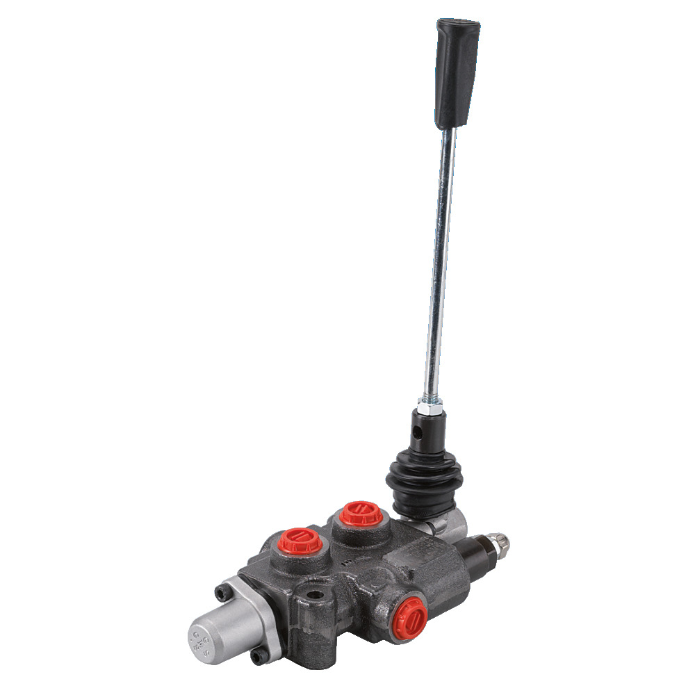 Mechanische Betätigung mit Federrückstellung in Standardausführung. Die Mittelstellung ist mit einem drucklosen Umlauf ausgeführt und die Anschlüsse A & B sind mit dem Tank verbunden. Druckbegrenzungsventil am Anschluss P (Pumpe). Negative Überdeckung der Schieber.Standardausführung der Ventile in Parallelschaltung.Durchfluss max.: 45 L/min.Betriebsdruck: 250 barmax. Druck: 315 barÜberdruckventil eingestellt: 100 bar, einstellbar von 20-315 barEinschraubgewinde A, B, P, P2: R3/8″Einschraubgewinde T, T2: R1/2″H=Heben, SW=Mittelstellung - Schwimmstellung, S=Senken Die angeführten Schaltstellungen sind vom jeweiligen Modell des Steuerventils abhängig.