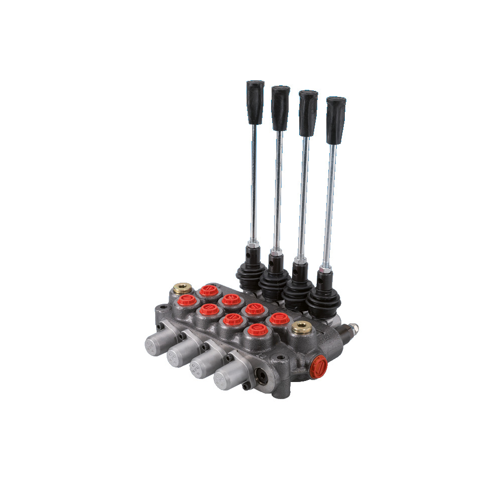 Mechanische Betätigung mit Federrückstellung in Standardausführung. Die Mittelstellung ist mit einem drucklosen Umlauf ausgeführt und die Anschlüsse A & B sind gesperrt. Druckbegrenzungsventil am Anschluss P (Pumpe). Negative Überdeckung der Schieber.1.Steuerschieber doppeltwirkend DW: H=Heben, 0= Mittelstellung, S=Senken2.Steuerschieber doppeltwirkend DW: H=Heben, 0= Mittelstellung, S=Senken3.Steuerschieber doppeltwirkend DW: H=Heben, 0= Mittelstellung, S=Senken4. Steuerschieber doppeltwirkend DW: H=Heben, 0= Mittelstellung, S=SenkenStandardausführung der Ventile in Parallelschaltung.Durchfluss max.: 45 L/min.Betriebsdruck: 250 barmax. Druck: 315 barÜberdruckventil eingestellt: 100 bar, einstellbar von 20-315 barEinschraubgewinde A, B, P, P2: R3/8″Einschraubgewinde T, T2: R1/2″Die angeführten Schaltstellungen sind vom jeweiligen Modell des Steuerventils abhängig.