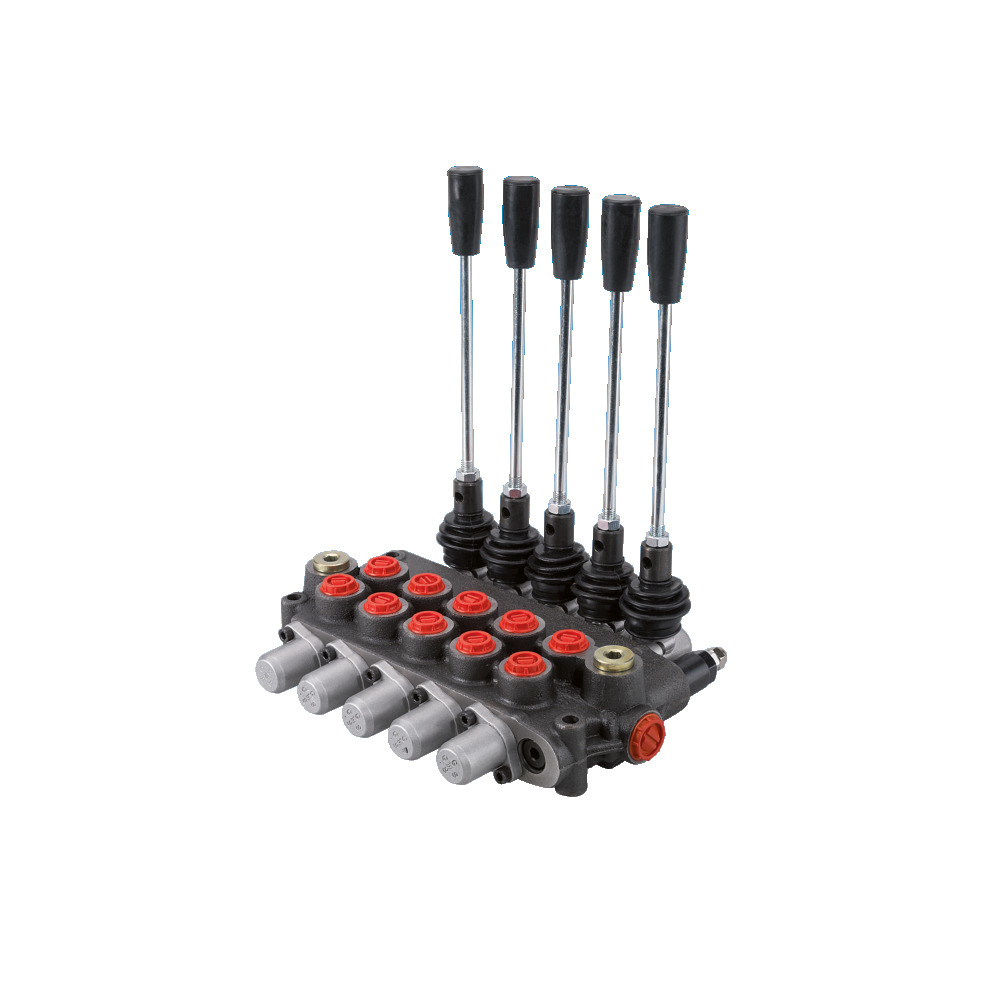 Mechanische Betätigung mit Federrückstellung in Standardausführung. Die Mittelstellung ist mit einem drucklosen Umlauf ausgeführt und die Anschlüsse A, B sind gesperrt. Druckbegrenzungsventil am Anschluss P (Pumpe). Negative Überdeckung der Schieber.Standardausführung der Ventile in Parallelschaltung.Durchfluss max.: 45 L/min.Betriebsdruck: 250 barmax. Druck: 320 barÜberdruckventil eingestellt: 150 bar, einstellbar von 50-350 barEinschraubgewinde A, B, P, P2: R3/8″Einschraubgewinde T, T2: R1/2″H=Heben, 0=Mittelstellung, S=Senken Die angeführten Schaltstellungen sind vom jeweiligen Modell des Steuerventils abhängig.